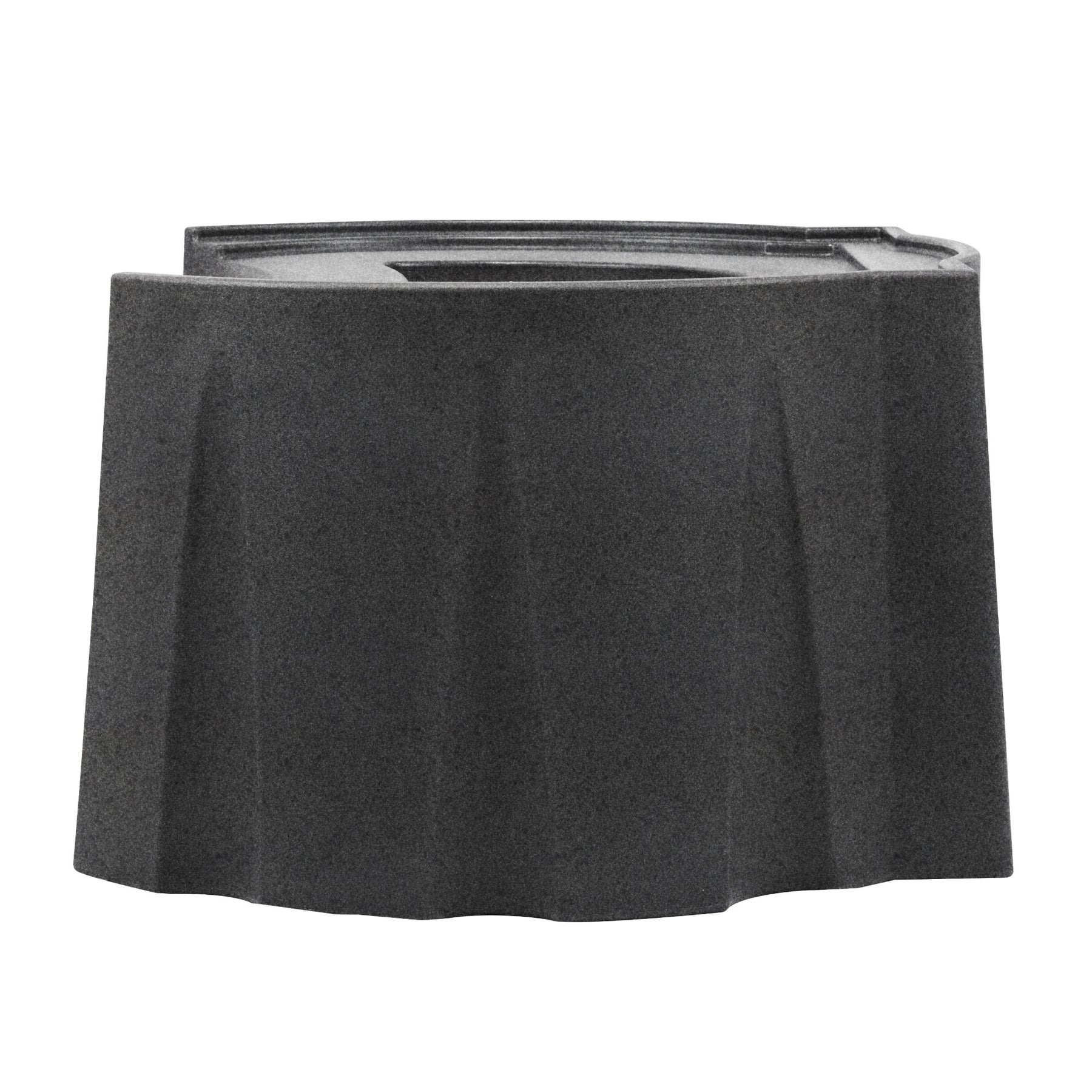 - Dark granite finish adds curb appeal to raised rain barrels with a flat-back profile that fits neatly against walls or fences