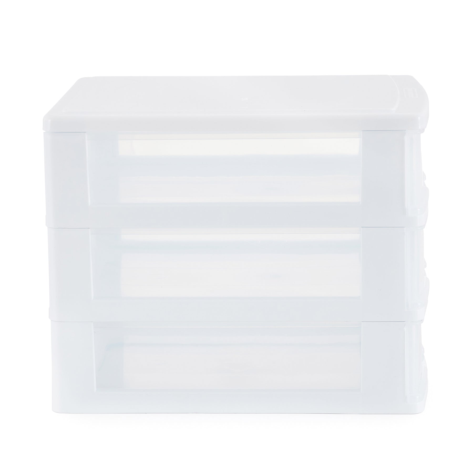• Clear drawers allow you to effortlessly view items inside; White frame coordinates with any decor, great for placement just about anywhere