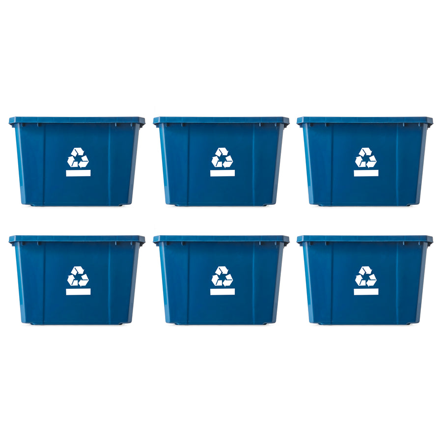 • Pack of 6 medium, bold blue recycling bins help you collect recyclables with its ample 17-gallon capacity