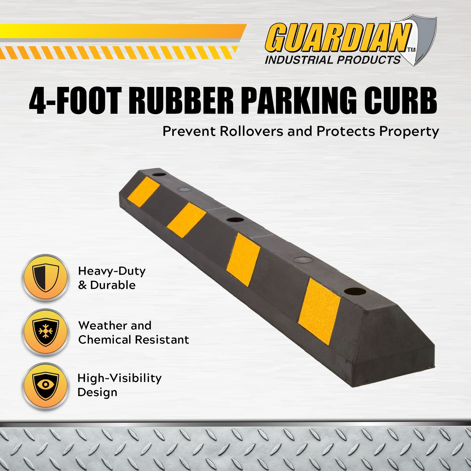 Guardian Parking Stop, 4 Foot Long Rubber Curb with Mounting Holes, Black/Yellow