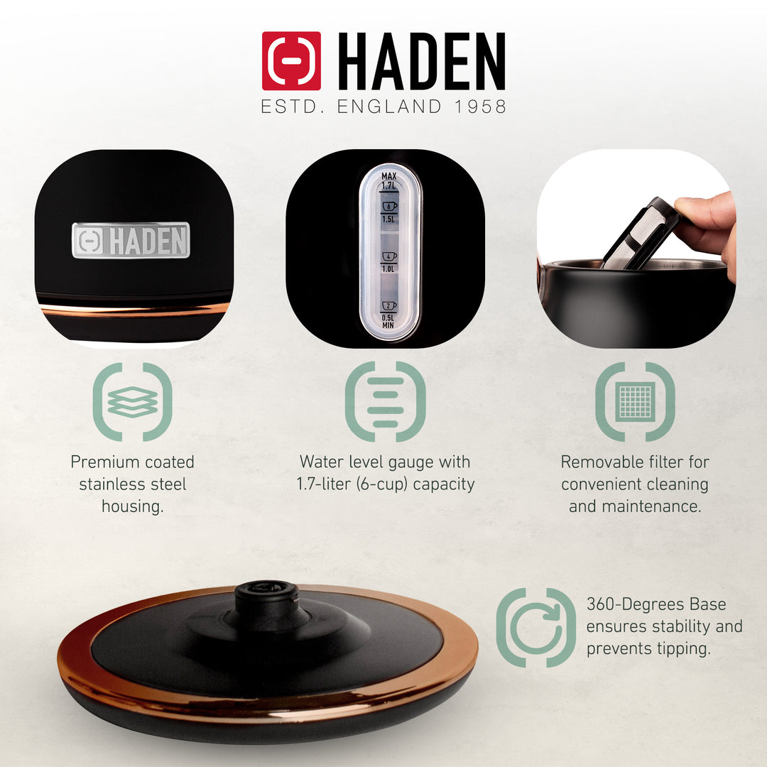 - Haden Heritage 1.7 Liter Stainless Steel Electric Water Kettle