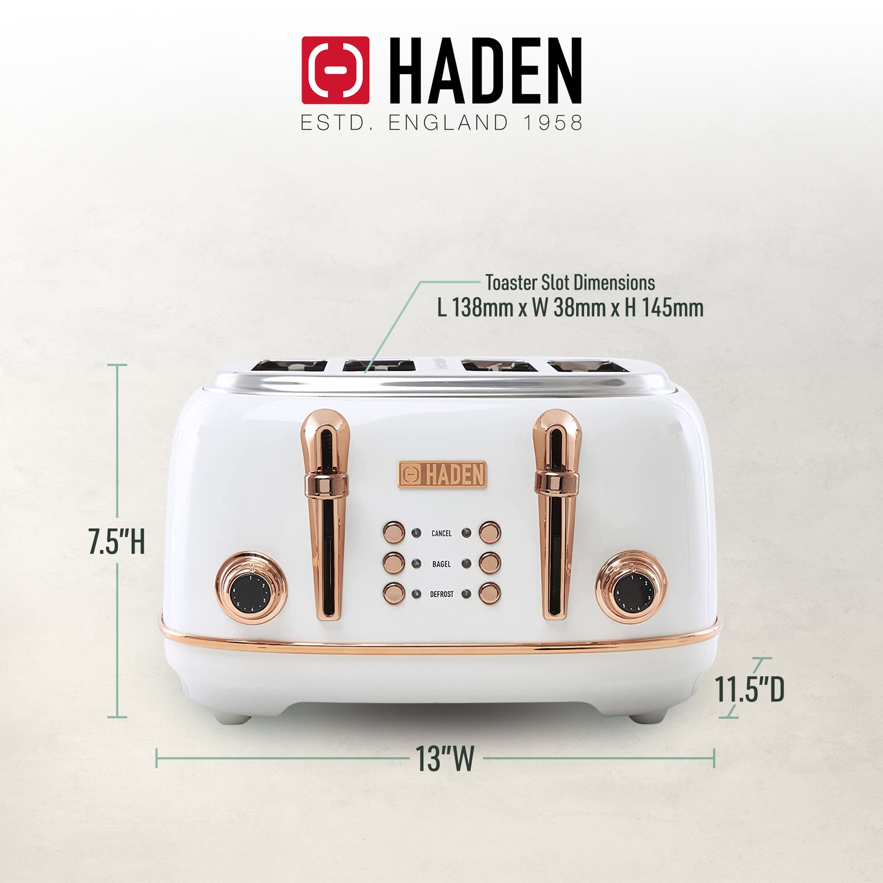 Haden 4 Slice Wide Slot Toaster w/Removable Crumb Tray, Ivory/Copper (Used)