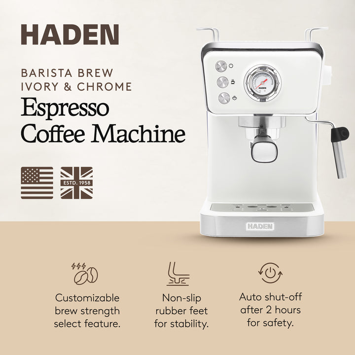 - Elevate your kitchen with this HADEN espresso coffee maker, where classic style meets contemporary living