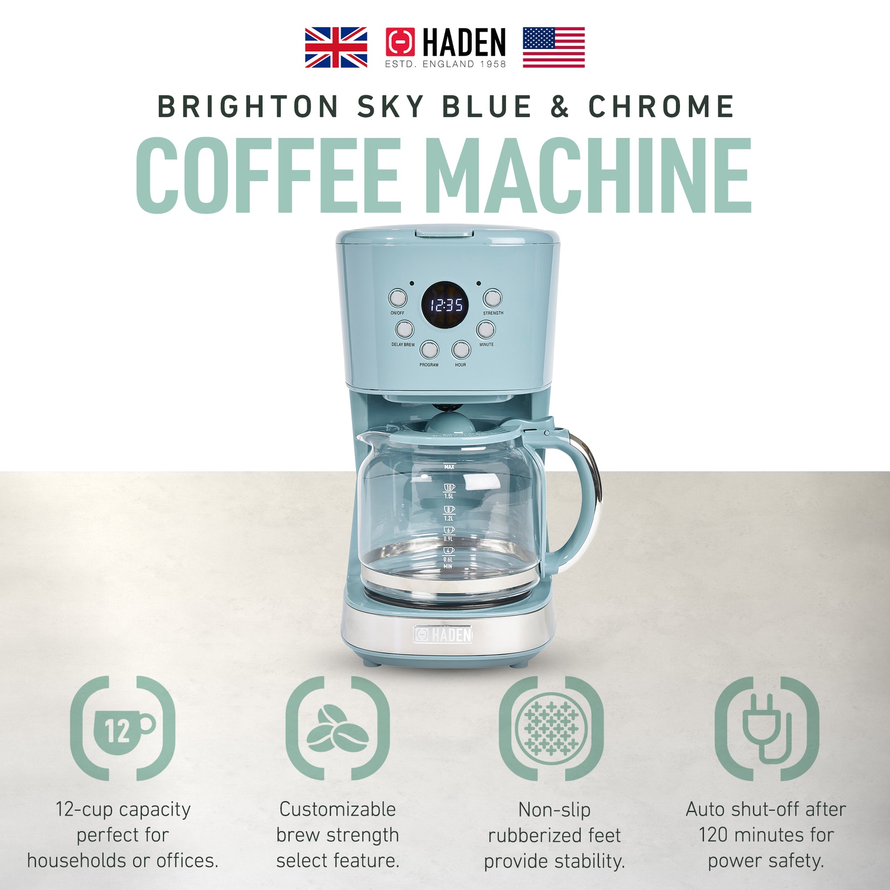 Haden Brighton 12 Cup Sleek Modern Nautical Coffee Maker, Sky Blue (Open Box)