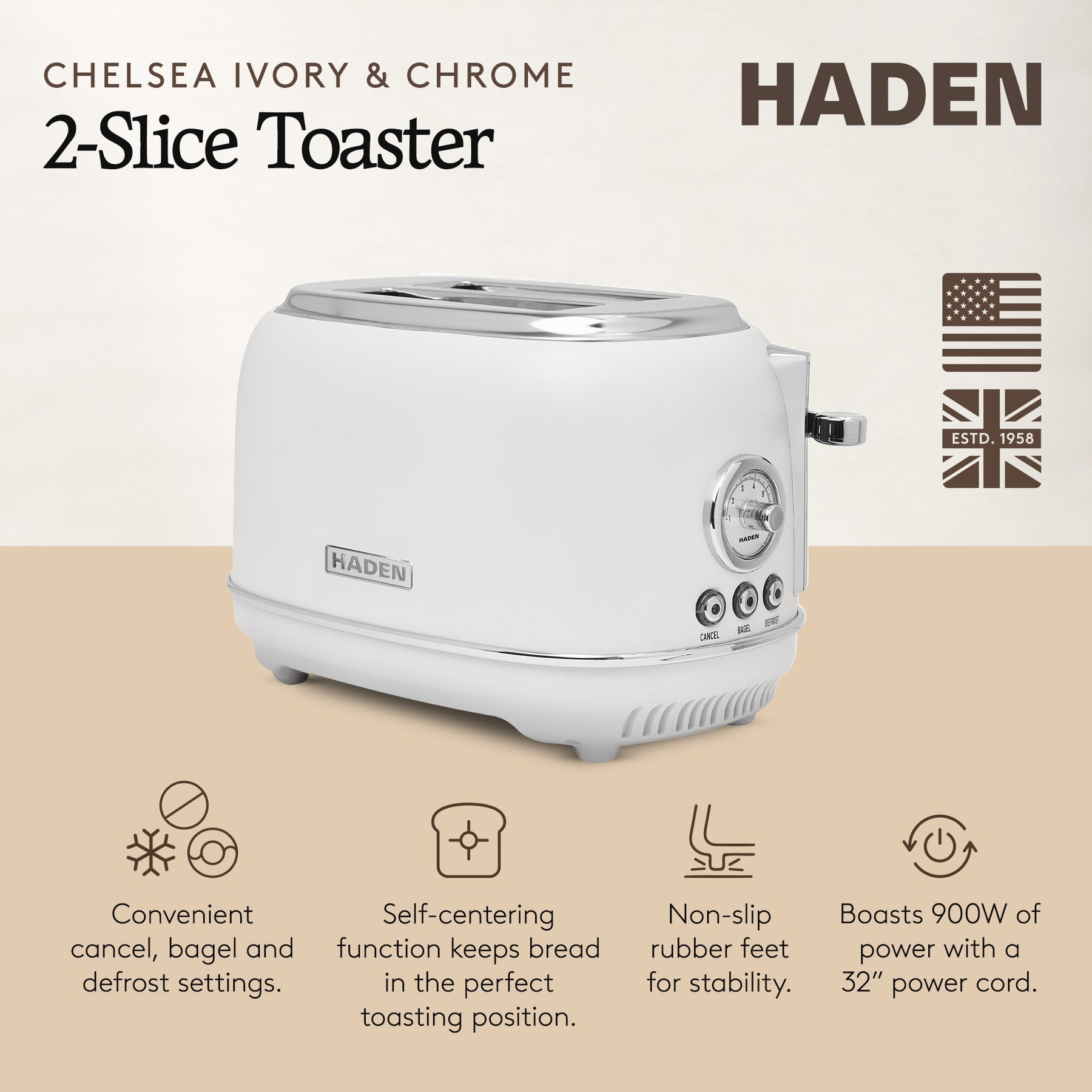 Haden Chelsea Stainless Steel 2 Slice Toaster, Extra Wide Slots, Ivory(Open Box)