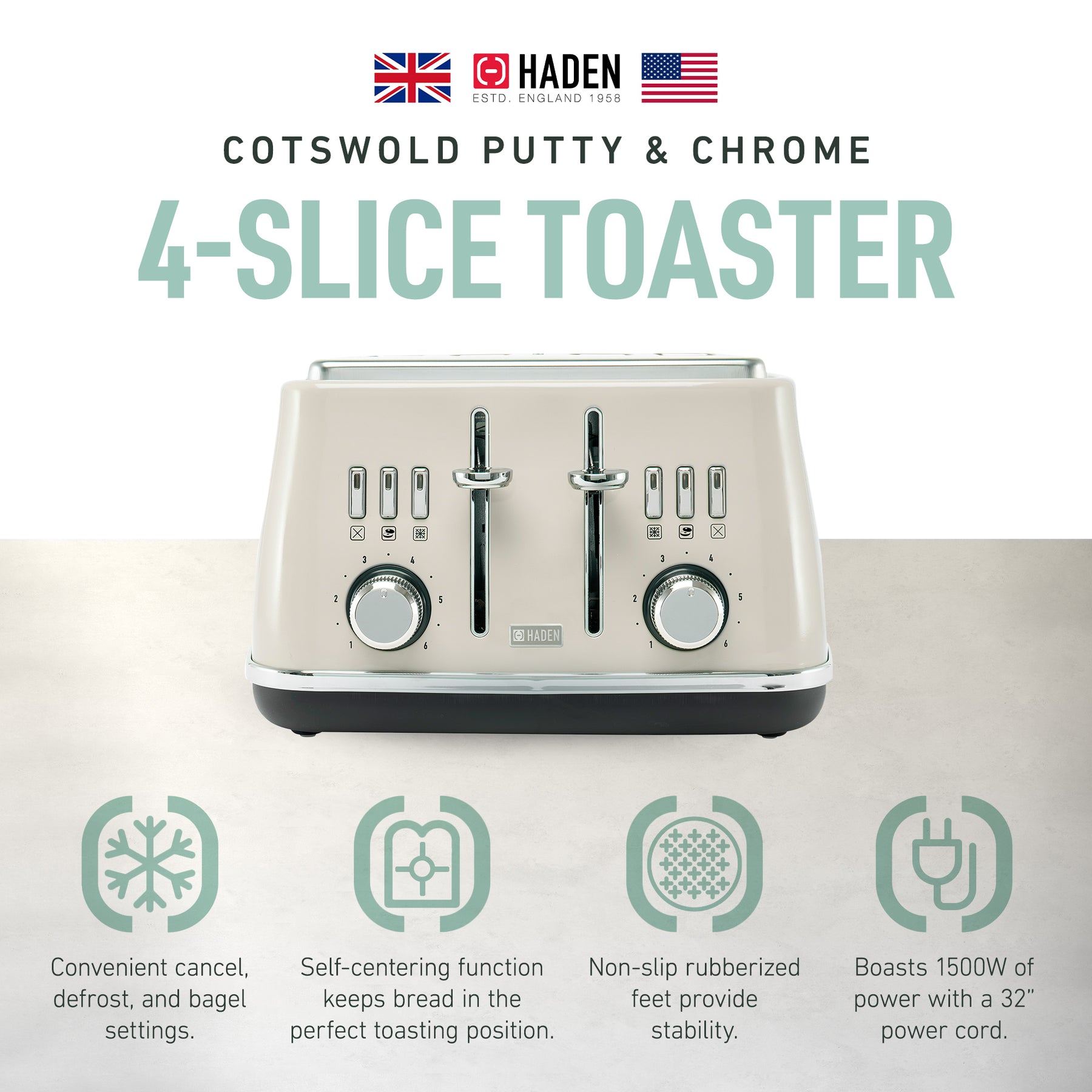 Haden Cotswold 4 Slice Toaster with Wide Slot & Adjustable Browning, Putty(Used)
