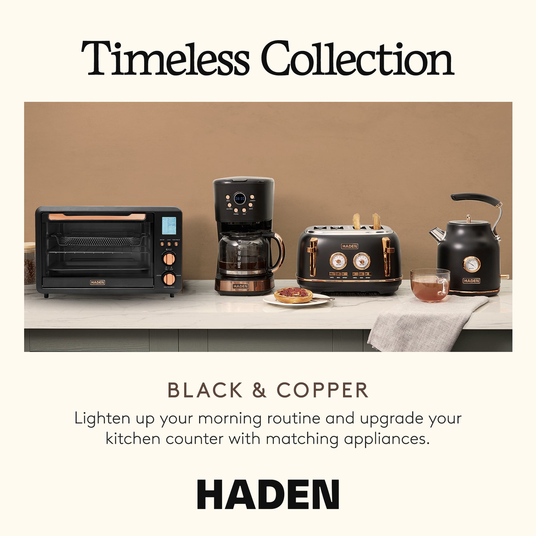 - With a 25-liter capacity, the Haden Toaster Oven comfortably fits up to six slices of toast or a 12-inch pizza, making it ideal for family dinners or entertaining friends without compromising countertop space