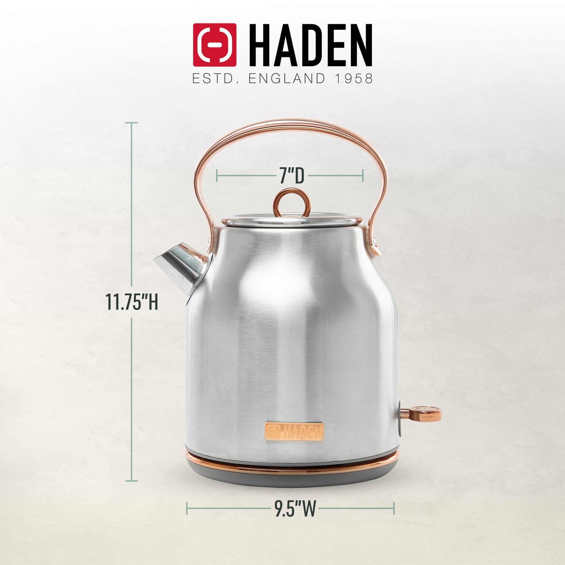 Haden Heritage 1.7L Stainless Steel Retro Electric Kettle, Steel/Copper (Used)