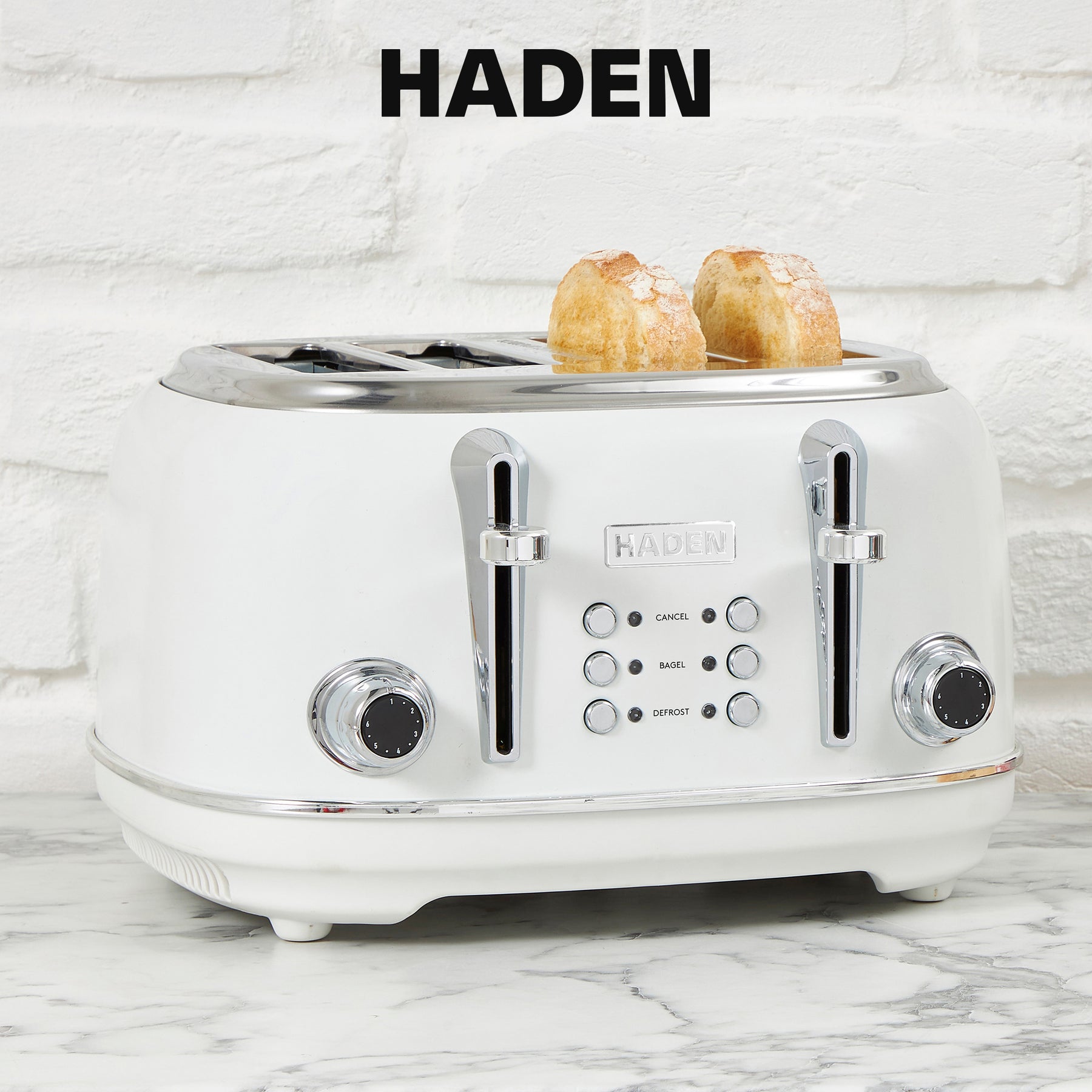 Haden Heritage 4 Slice Wide Slot Stainless Steel Body Retro Toaster, White(Used)