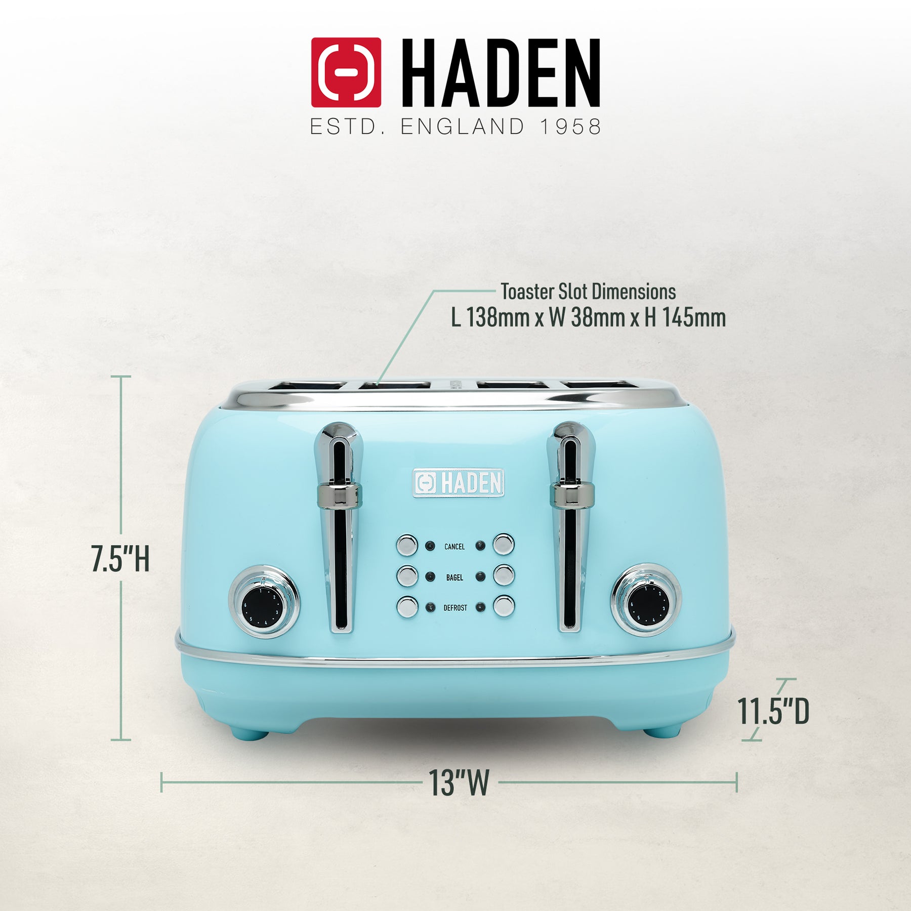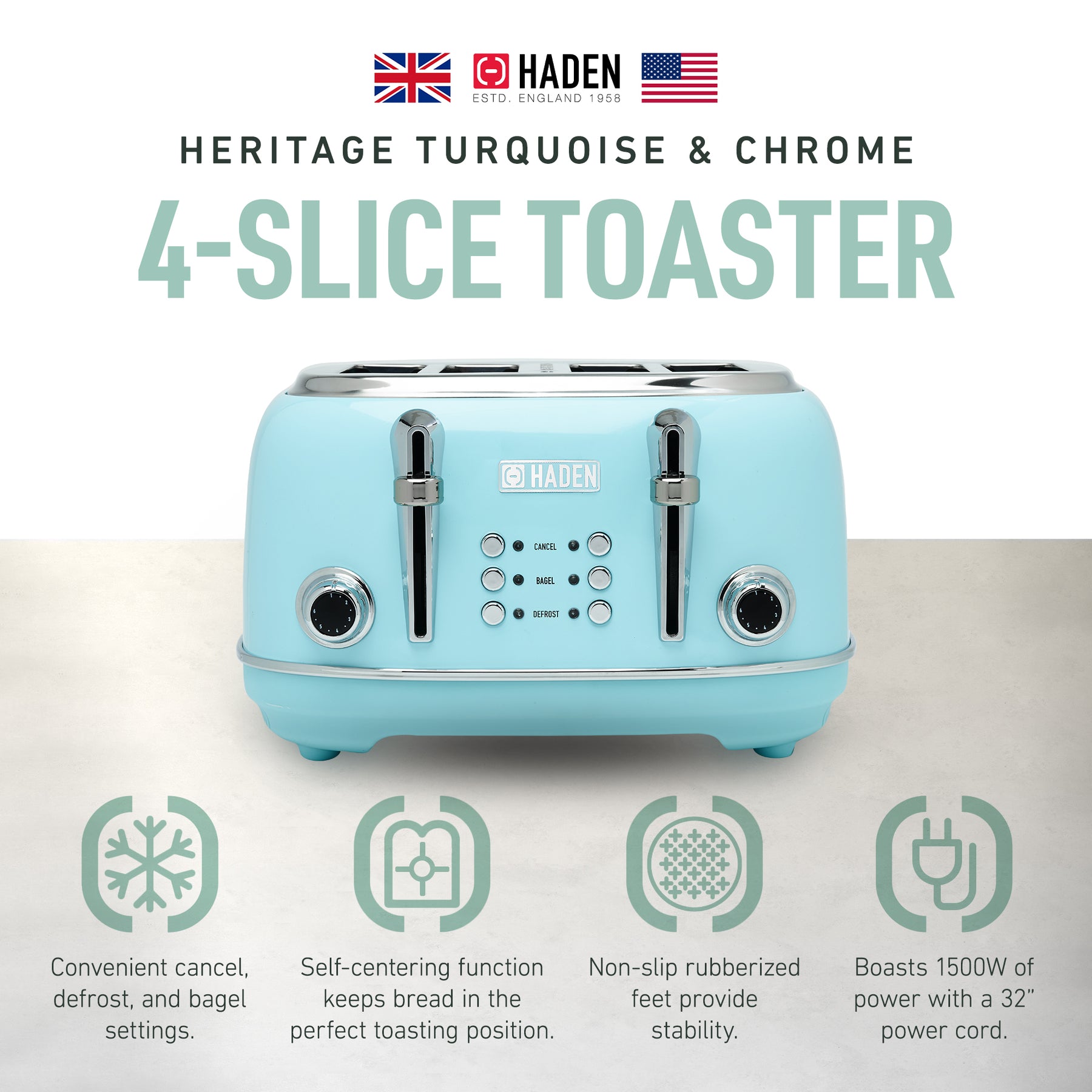 Haden Heritage Wide Slot Stainless Steel Retro Toaster, Turquoise (Open Box)