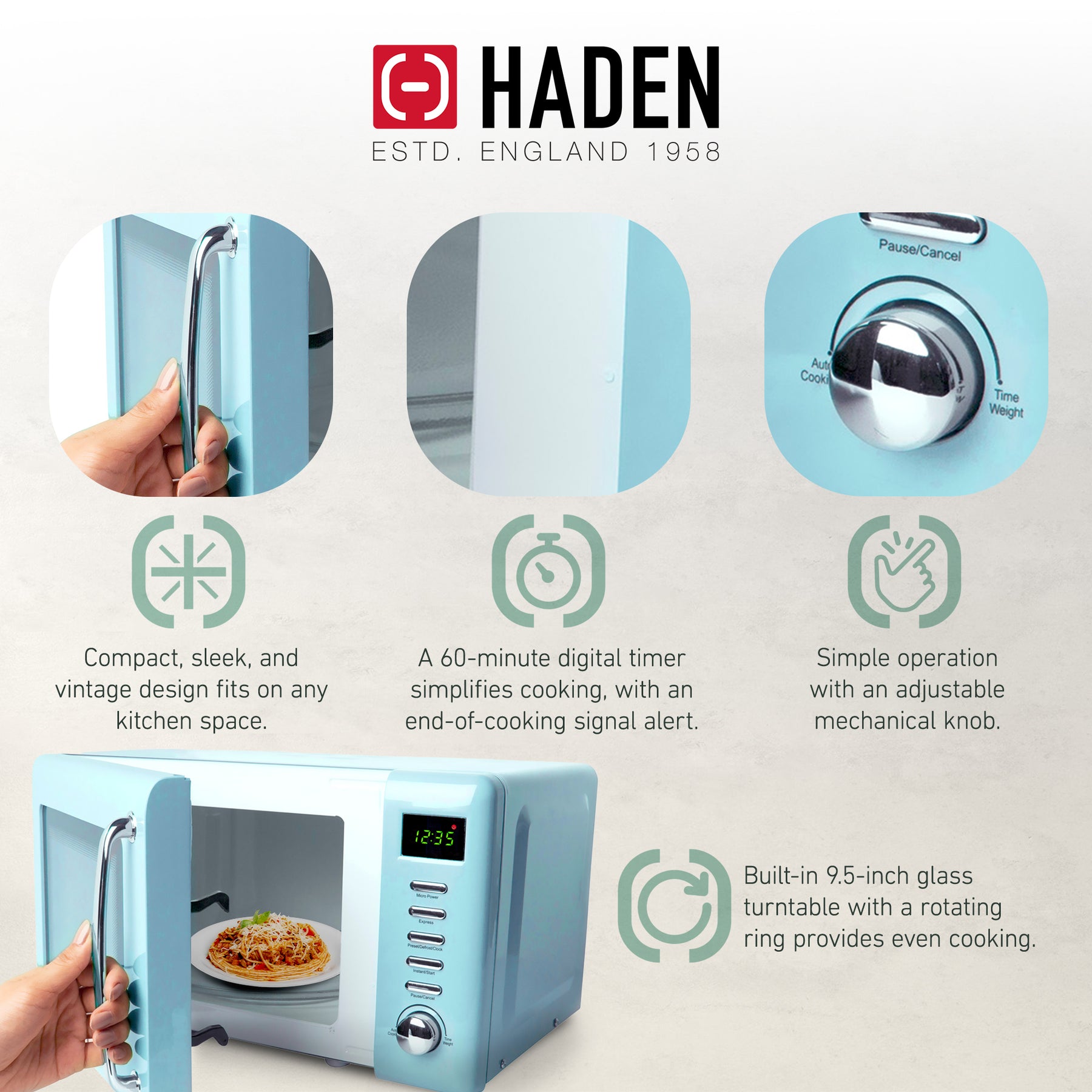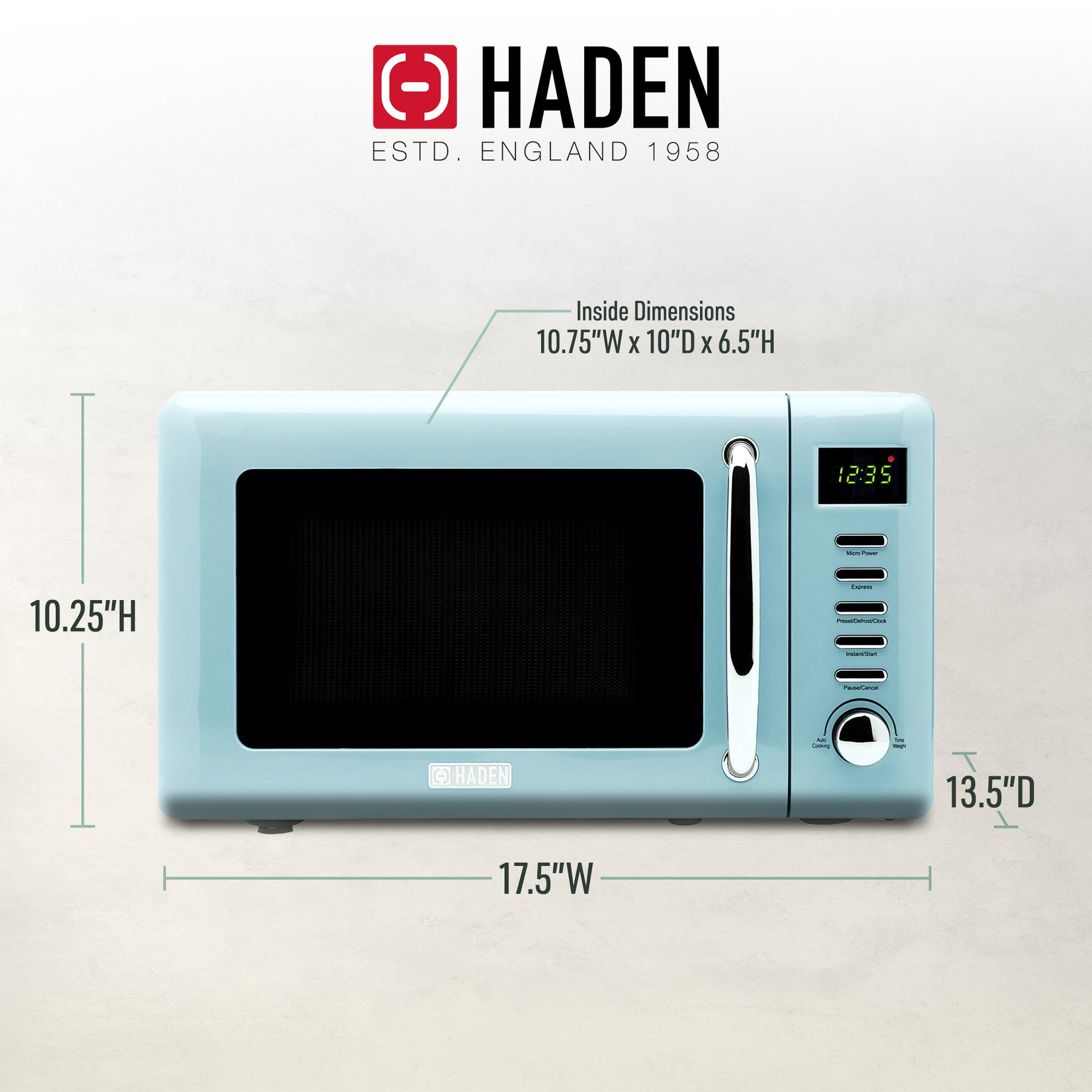 Haden Vintage Retro 0.7 Cu Ft 700W Countertop Microwave Oven, Blue (Open Box)