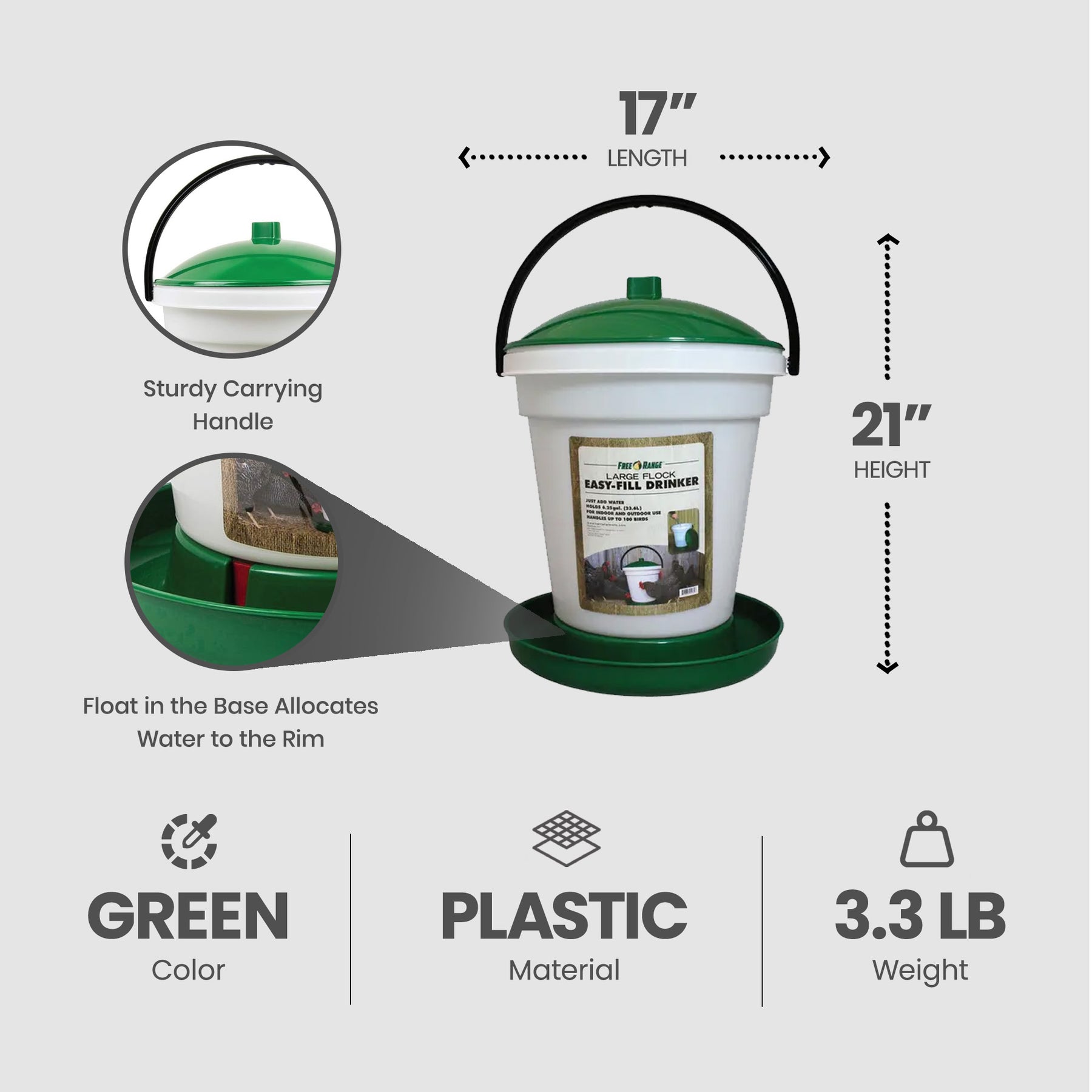 - Sturdy carrying handle makes relocating the drinker effortless, allowing you to move it with ease and convenience, whether adjusting your coop setup or moving between locations