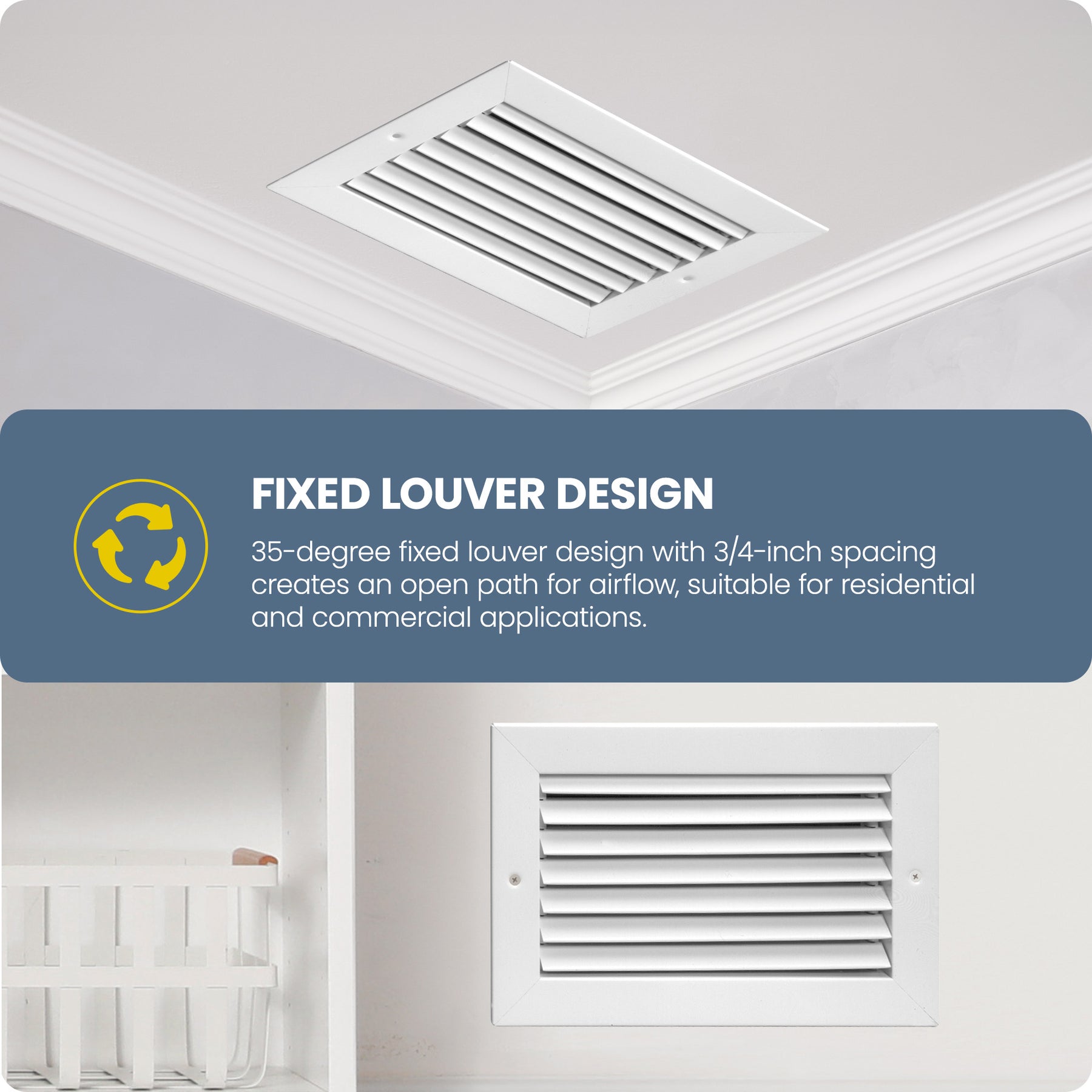 Featuring a classic fixed louver design with 35-degree blades, this grille allows air to pass through freely, which supports consistent air circulation throughout the space. The 35-degree angle pushes air away from the grille's mounting surface, which can help push return air into the ductwork more effectively. Additionally, the fixed blades are spaced 3/4 inches apart with a horizontal blade orientation for proper air flow.