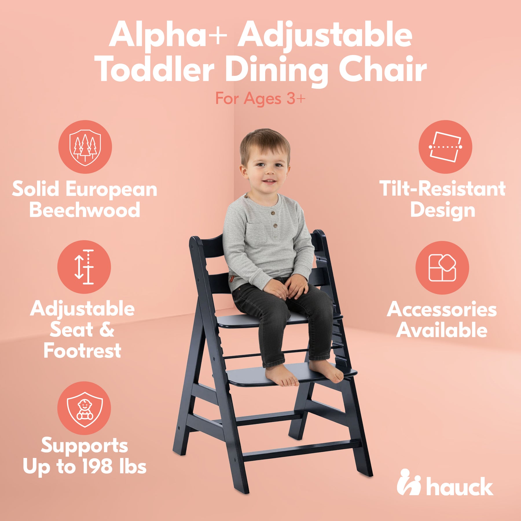Pair your baby crib, baby stroller, baby lounger, baby swing, night light, and other furniture in your baby's room with this versatile and durable Alpha+ Grow Along Solid Wood Toddler Chair from hauck.