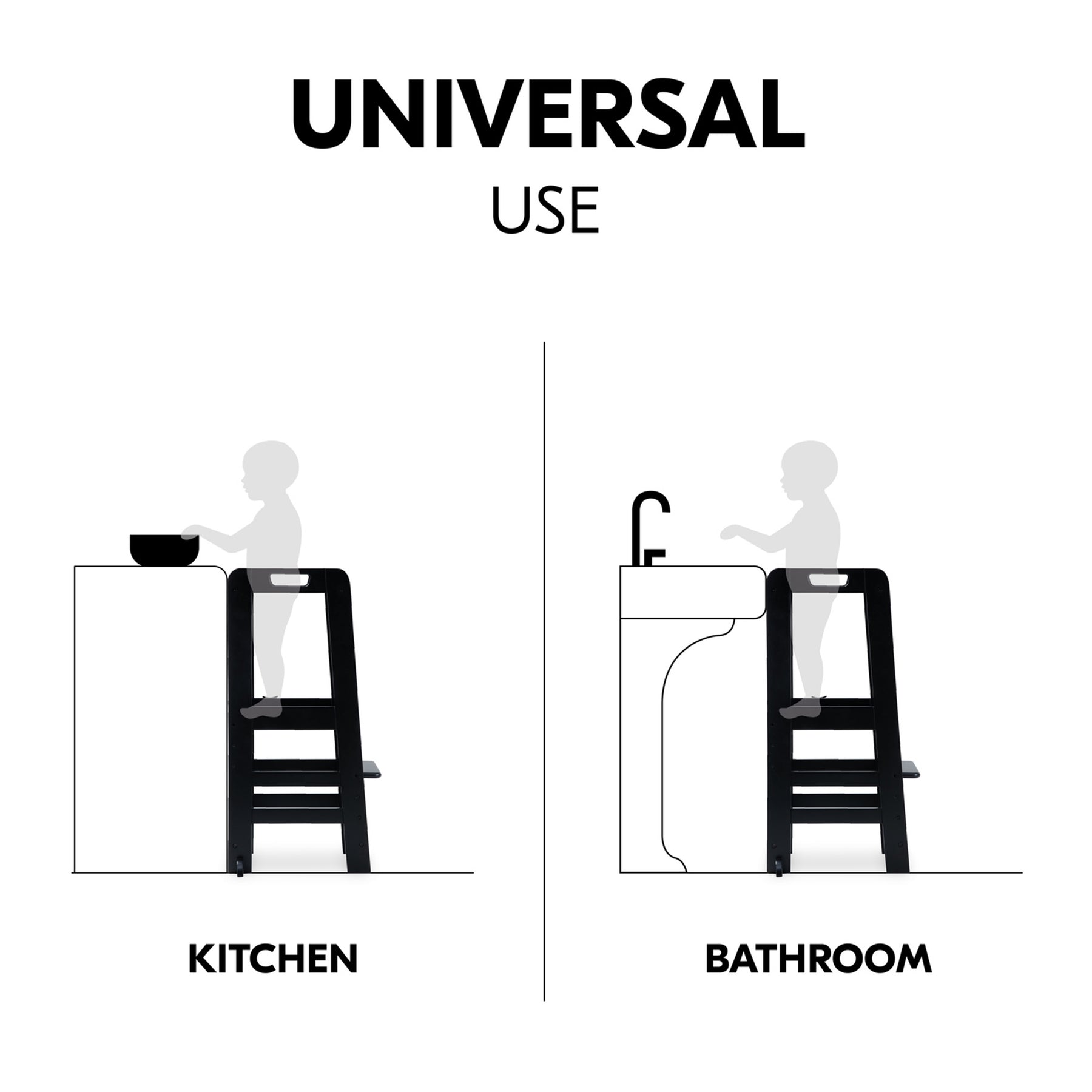 Hauck Learn N Explore Montessori Toddler Tower, Wooden Kitchen Stool, Black