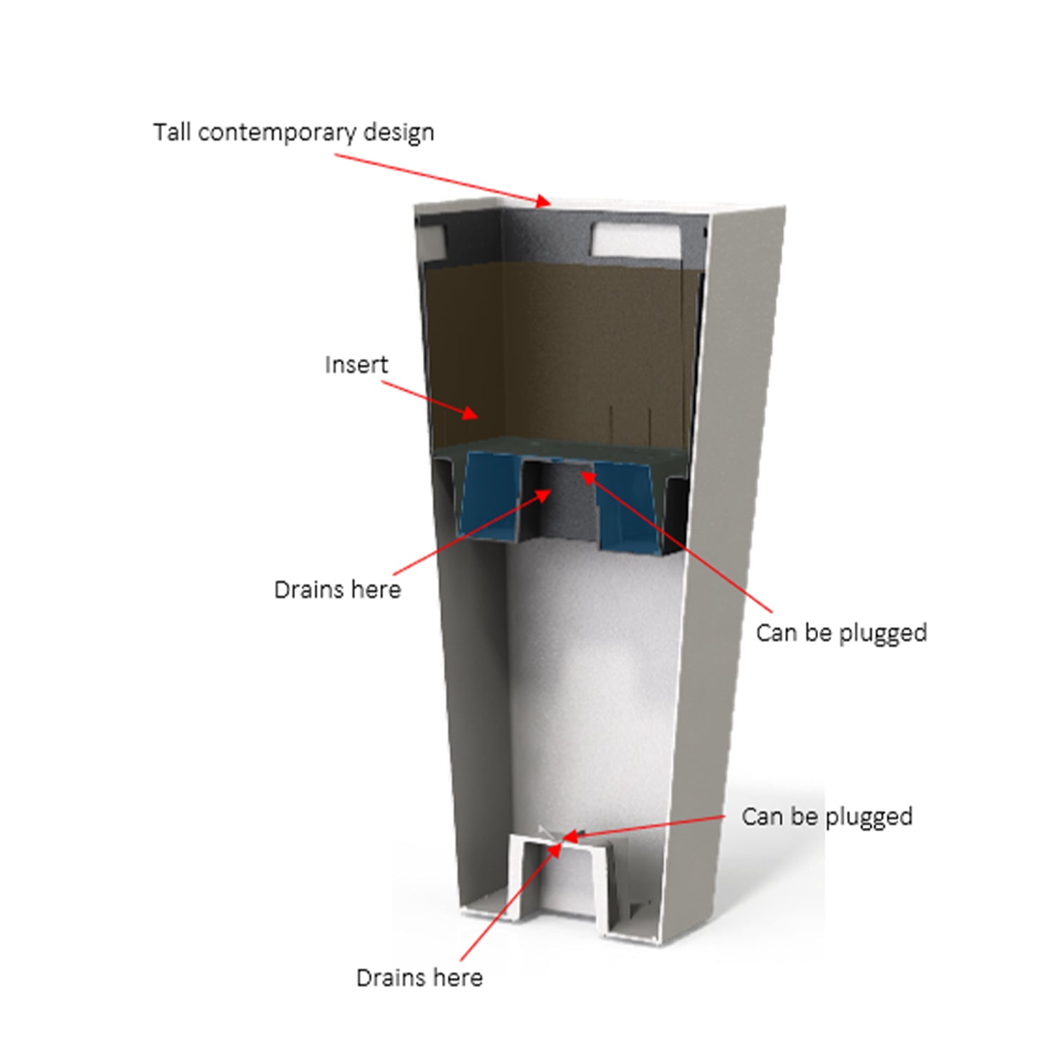 - Includes removable drain plug with a soil-saving insert to improve drainage aeration and has a self-watering feature