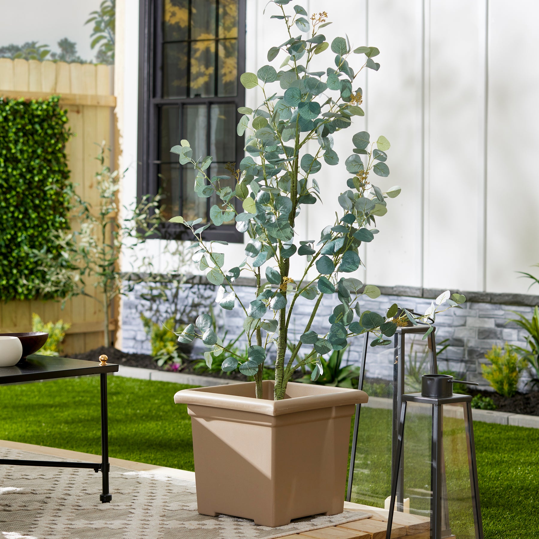 • 15.5-inch square plastic accent planter that's perfect for outdoor container gardening on your patio, porch deck, or balcony