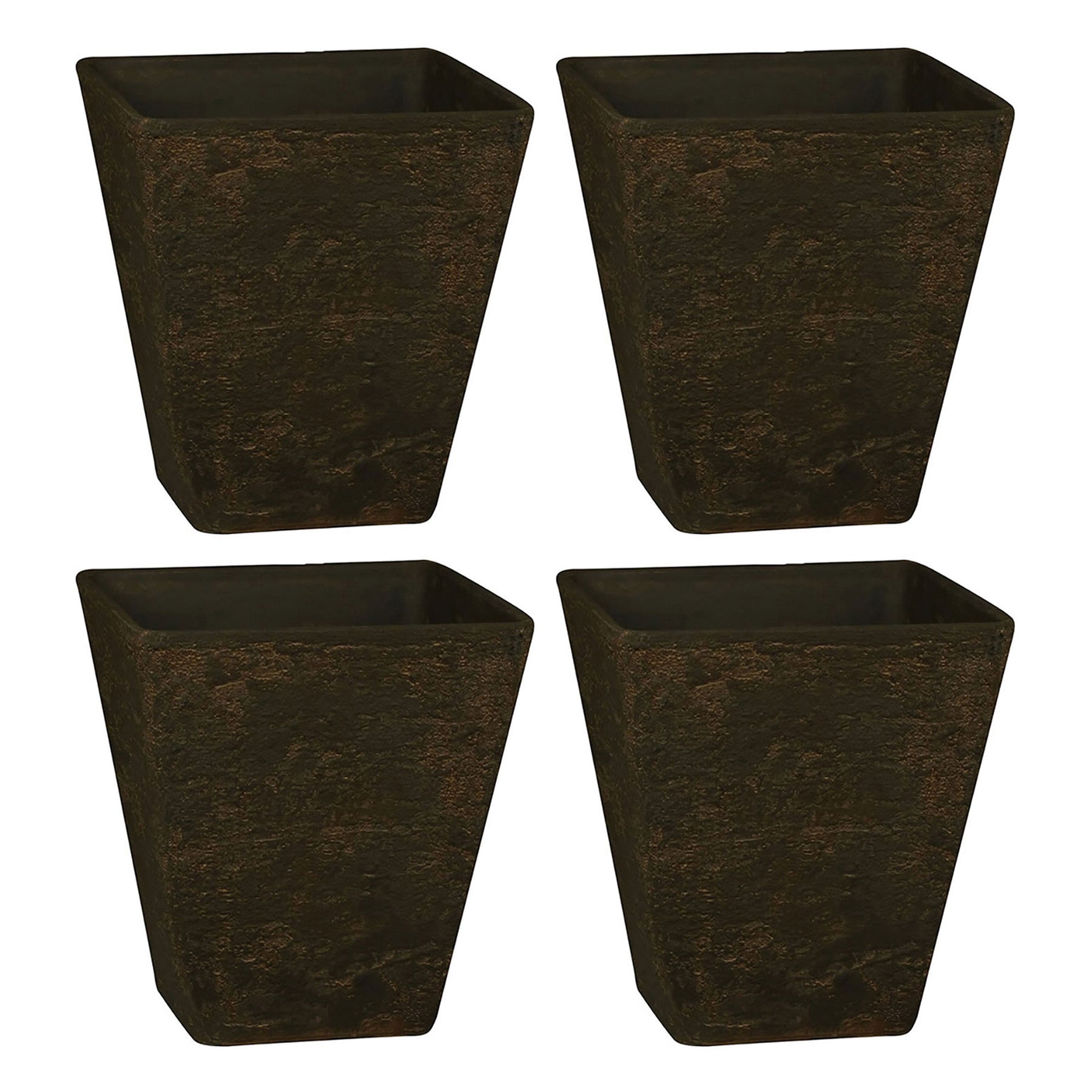 HC Companies 16 Inch Tahoe Outdoor Square Planter Pot, Falcon Brown (4 Pack)