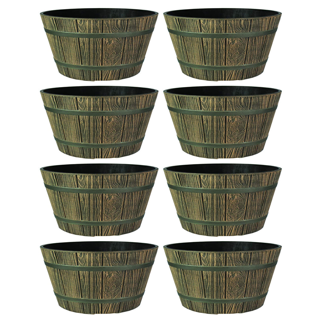 HC Companies 16" Indoor Outdoor Aged Wooden Oak Whiskey Barrel Planter (8 Pack)