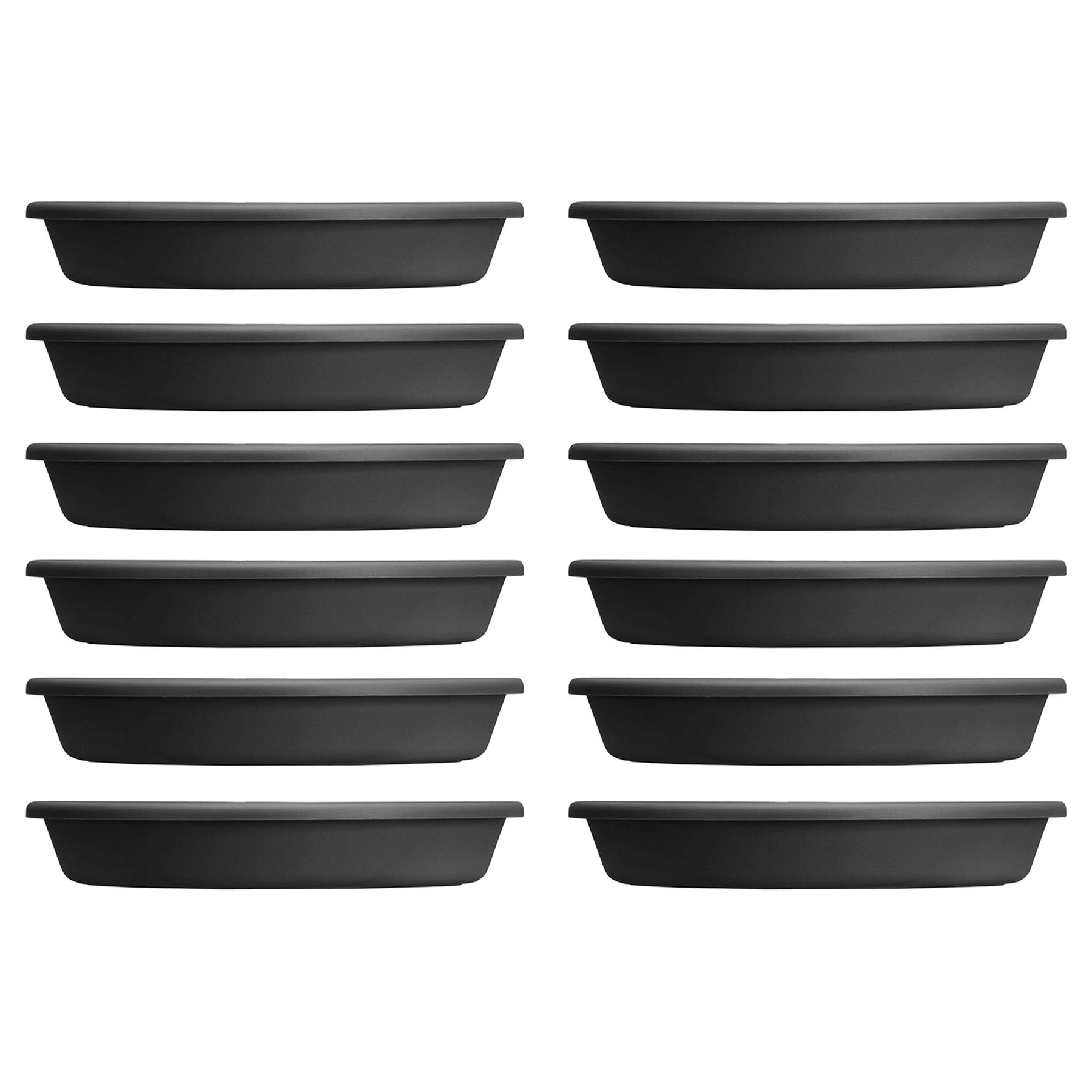 HC Companies Classic 21.13 Inch Round Saucer Tray for Pots, Black (12 Pack)