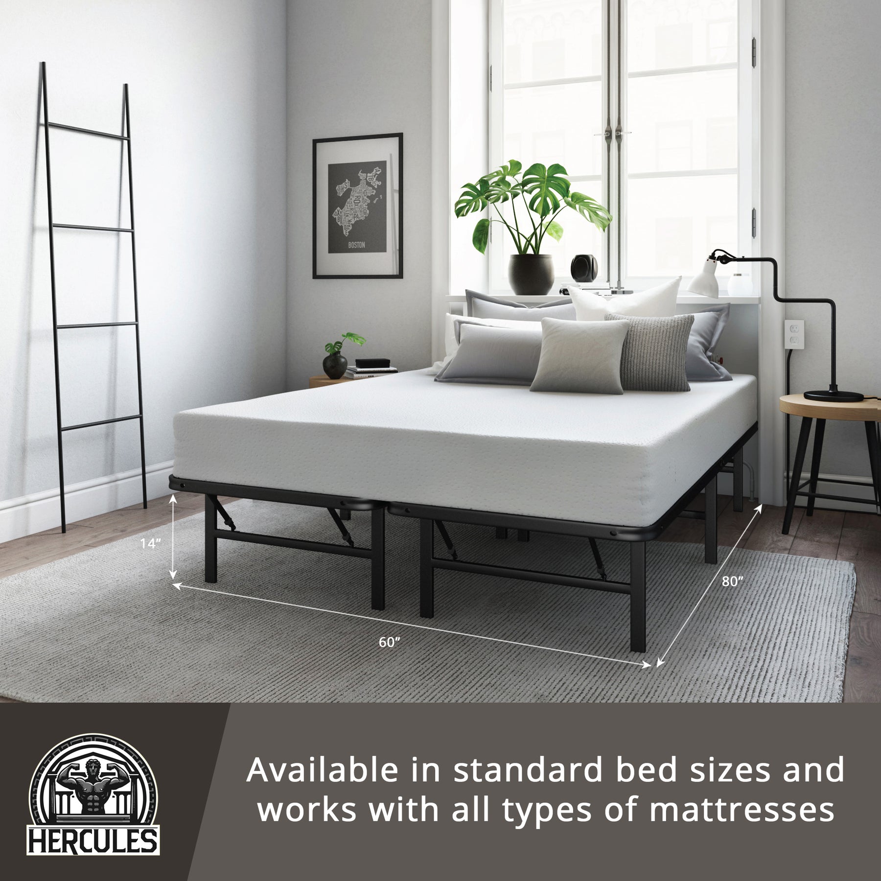 Hercules Folding Metal Bed Frame, 14" Platform Mattress Foundation, Queen (Used)