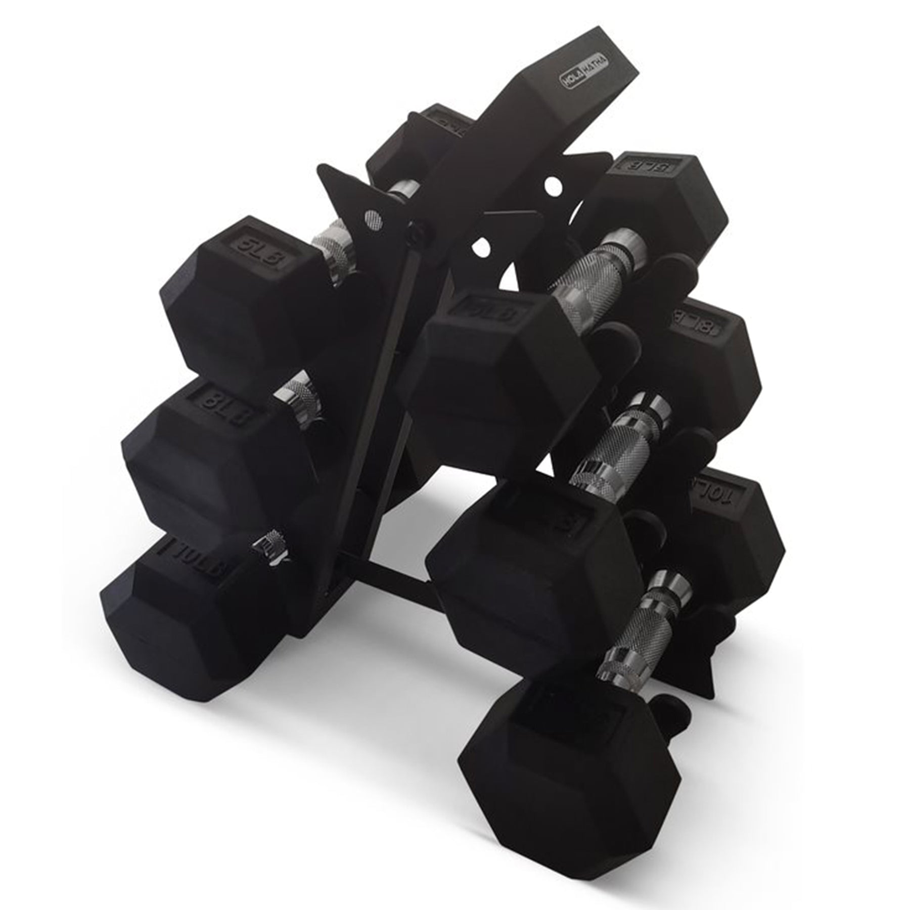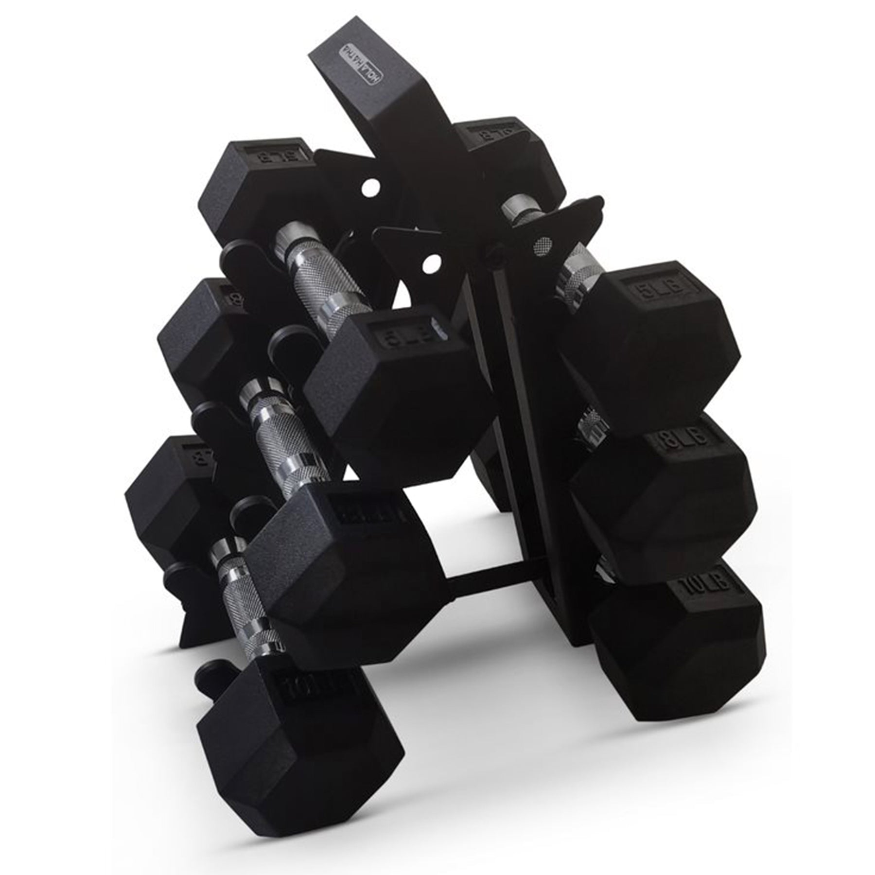 Hexagonal Dumbbell Free Hand Weight Set w/ Rack, 5, 8, & 10 Lbs (Open Box)