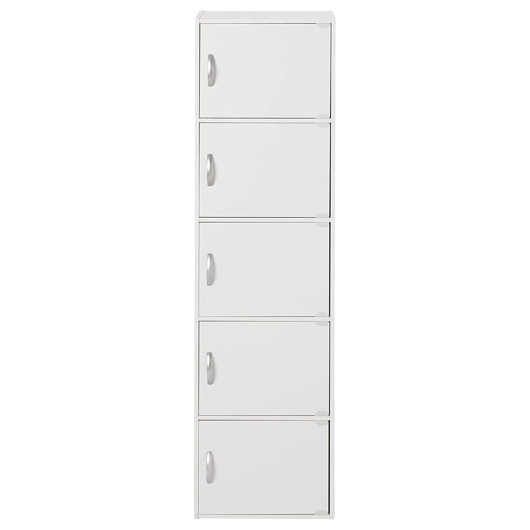 • Multi-purpose unit has 5 shelves with 5 doors to store books, clothes, toys, office supplies, and more