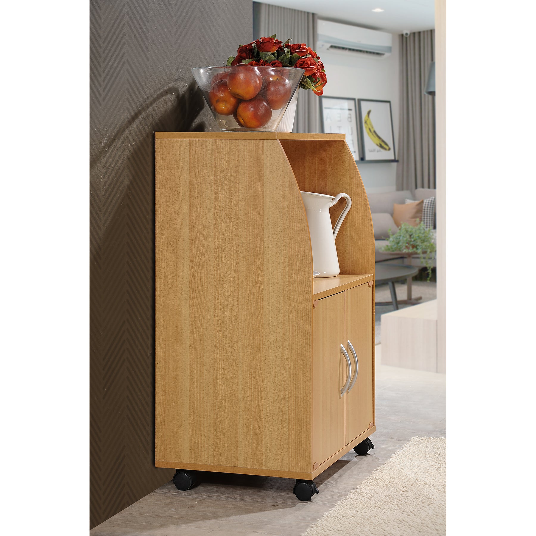 Hodedah Wooden Mini Wheeled Microwave Island Cart w/ Cabinet Storage (Open Box)