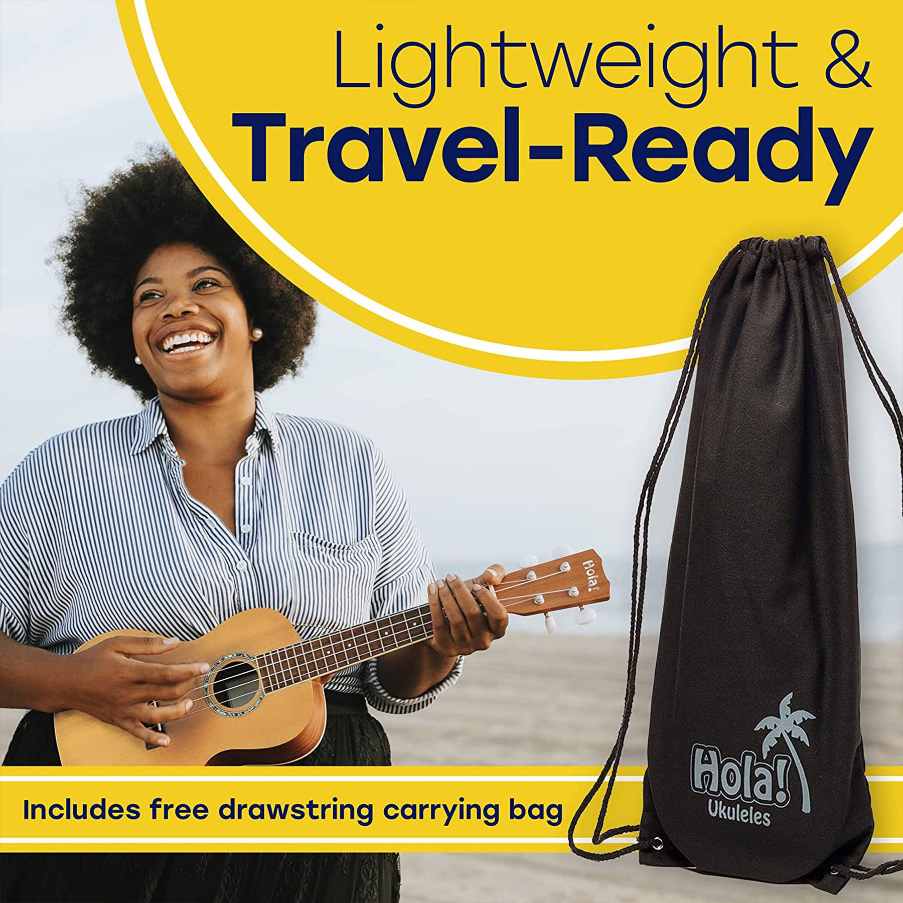 • Beginner bundle includes a canvas carrying tote, various size ukulele picks, and a colorful strap with a hook