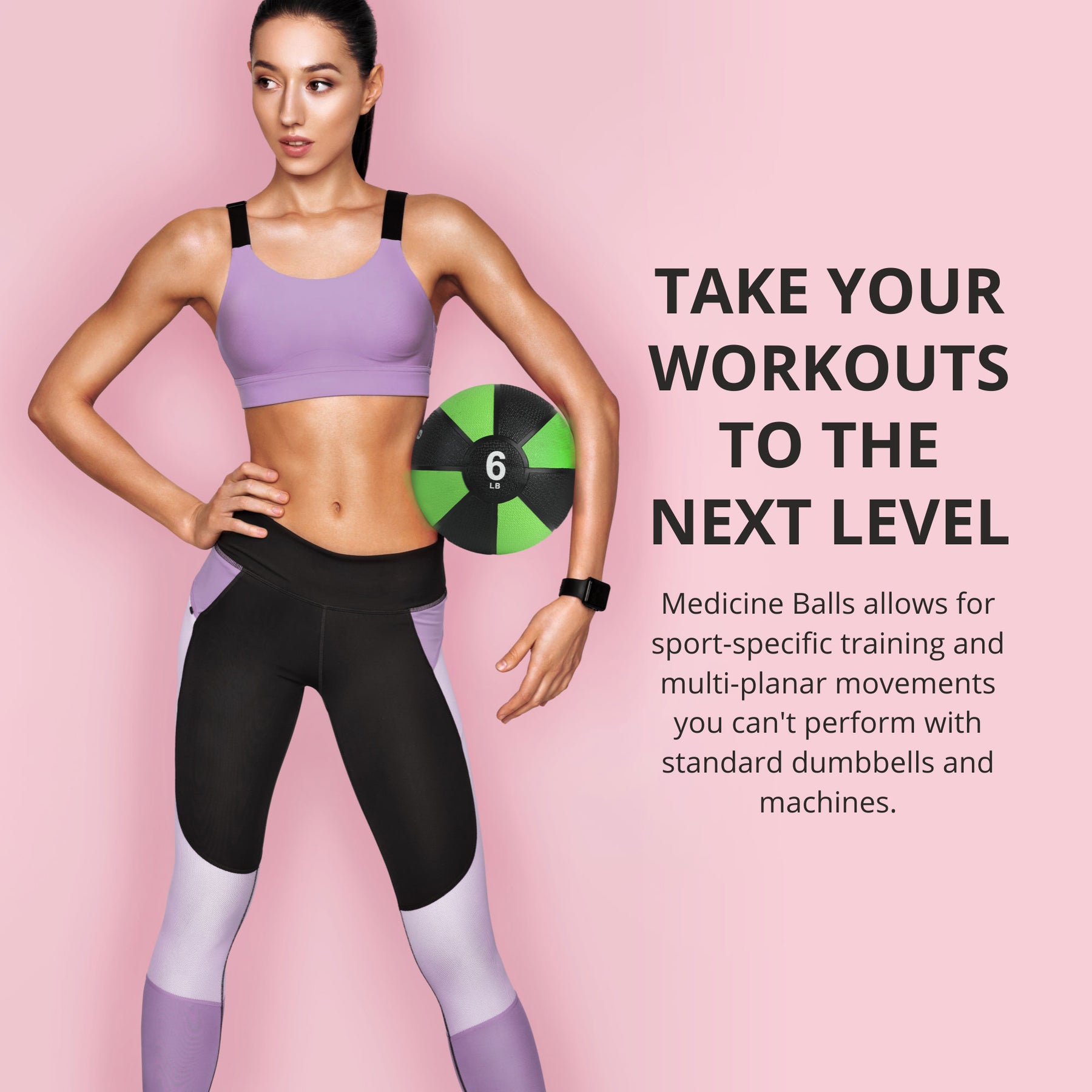 This exercise equipment is perfect for kids and adults of all ages with medicine balls ranging from 4 to 15 pounds. With the variety of weighted exercise balls you will be able to progress from lighter weights to heavier as you hit your fitness goals. This variety of weights benefits you and allows various strength levels to get the workouts they deserve. Featuring a lightly textured firm rubber surface, this weighted ball will provide a superior grip and long-lasting durability. The weight of each ball is clearly labeled on both sides so you won't mix up which weight you are working out with.