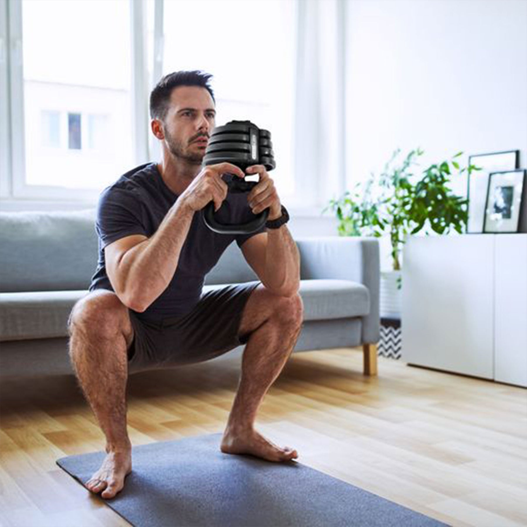 • Adjust the weight by rotating the dumbbell handle; Takes only 1 second to maneuver