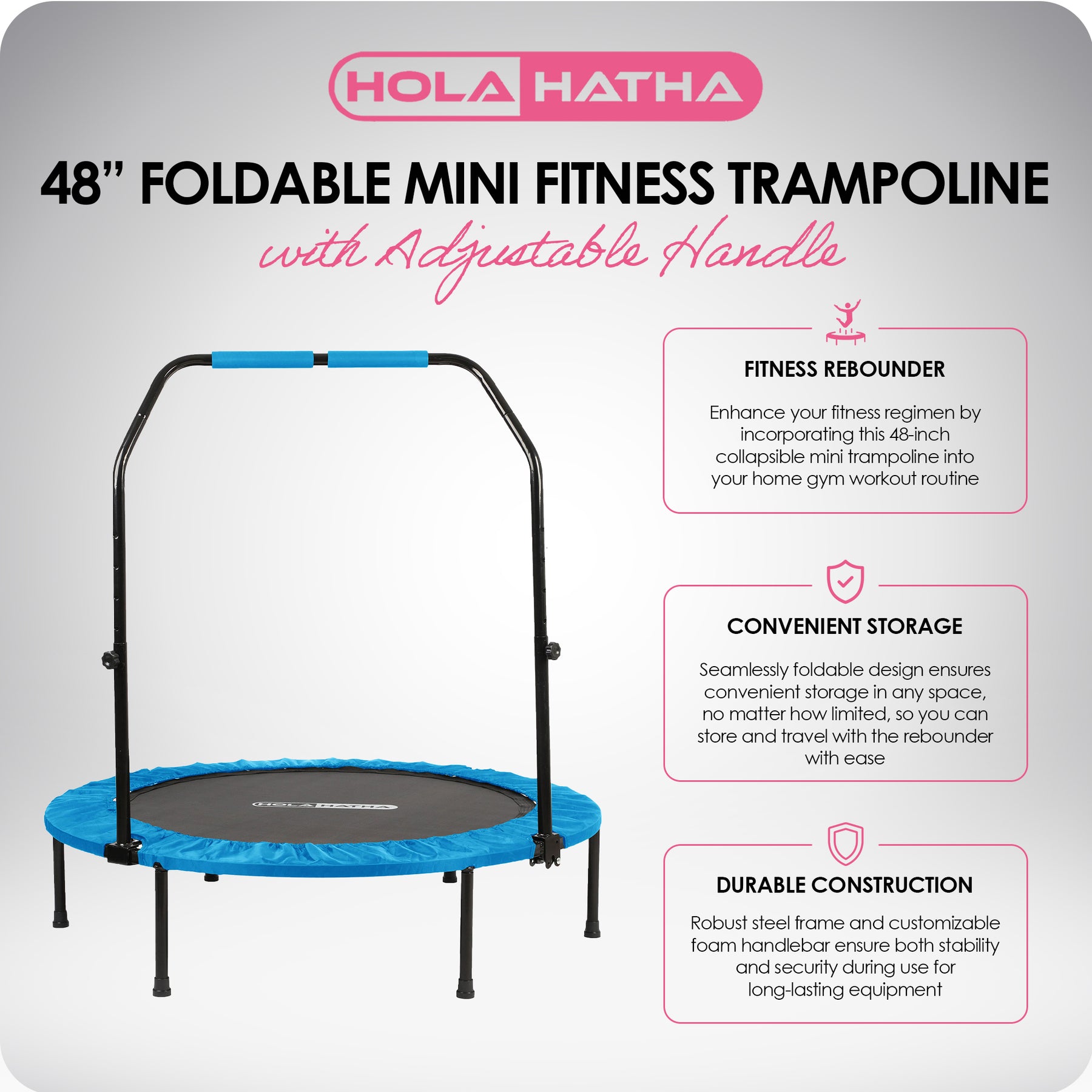 HolaHatha 48" Foldable Fitness Trampoline w/ Adjustable Handle, Blue (Open Box)
