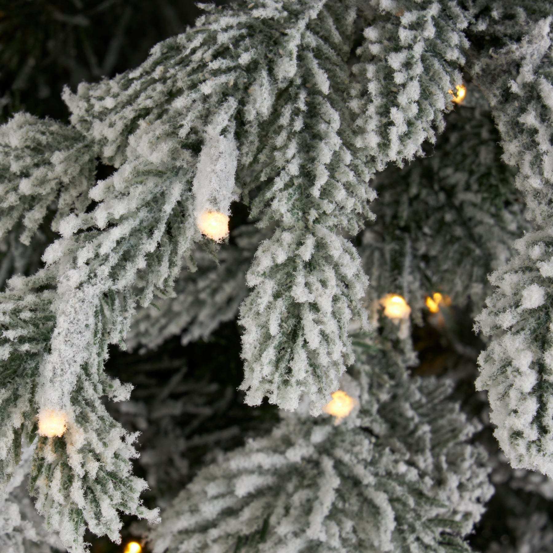 • Bring the holiday cheer into your home with this holiday Home Heritage 7.5' Overlight Flocked Prelit Artificial Christmas Tree with dimmable clear micro dot LED lights