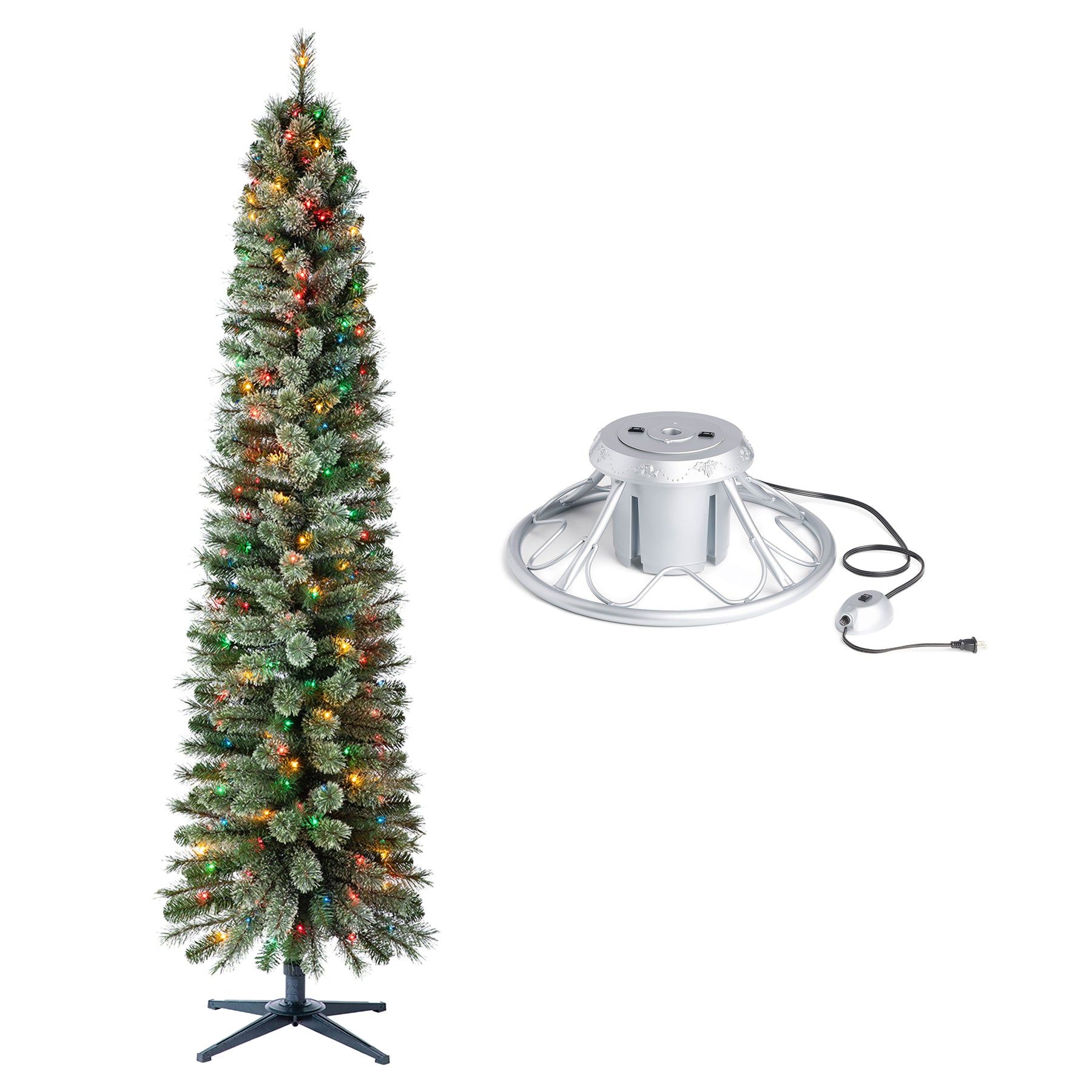 Create an unforgettable holiday display with the Home Heritage Rotating Tree Stand Base and Stanley Skinny Pencil Pre-Lit Artificial Christmas Tree. This dynamic duo brings convenience and elegance, ensuring your tree stands tall and beautifully illuminated. The 22-inch rotating base supports artificial trees up to 9 feet tall, securely holding poles from 1 to 1.75 inches in diameter. Designed for full 360-degree rotation, this stand lets every angle of your decorated tree shine, adding festive cheer from every side. Crafted from durable metal, it’s reliable for seasonal enjoyment and effortless storage.
