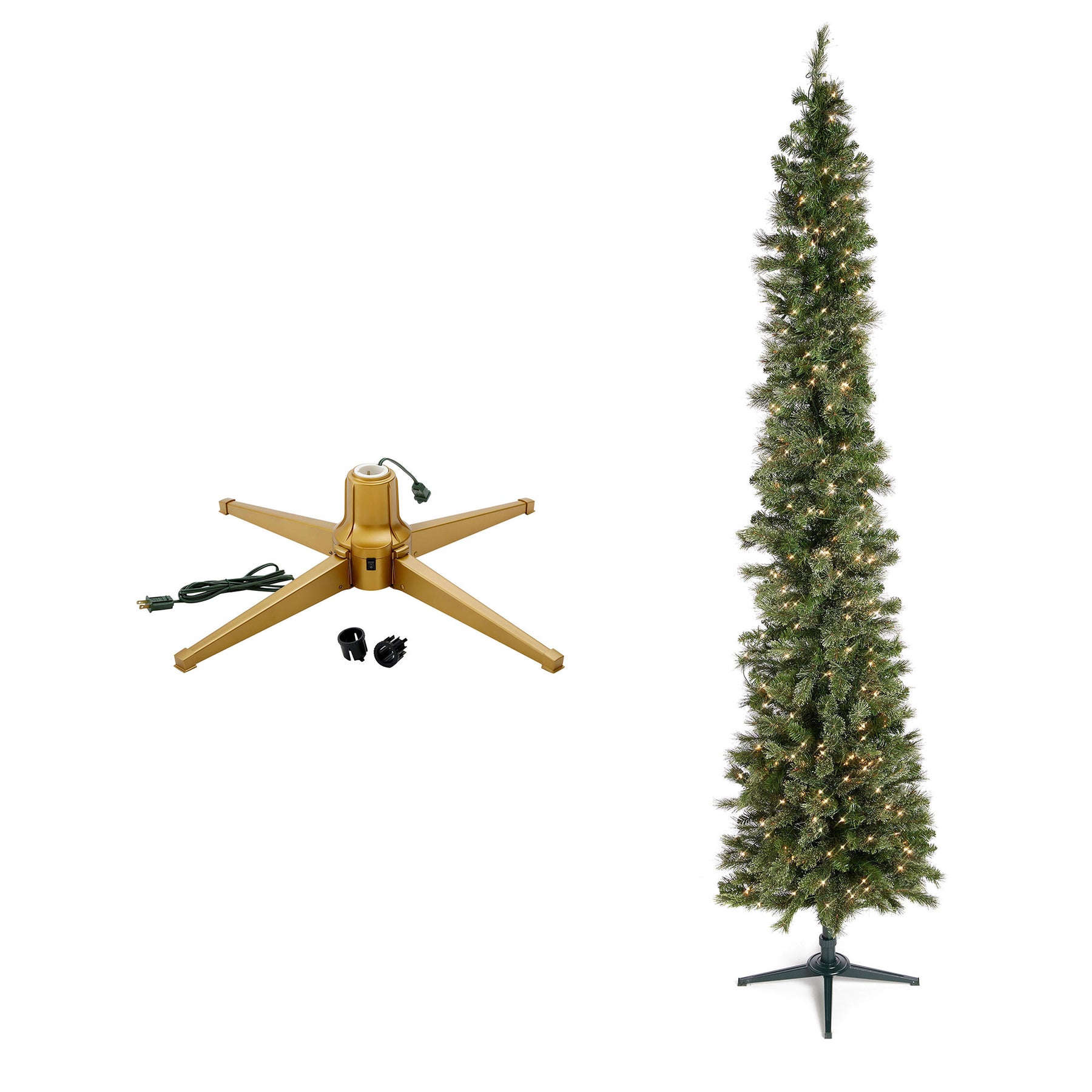 Home Heritage Rotating Tree Stand Base w/Stanley 9' Skinny Pencil Christmas Tree