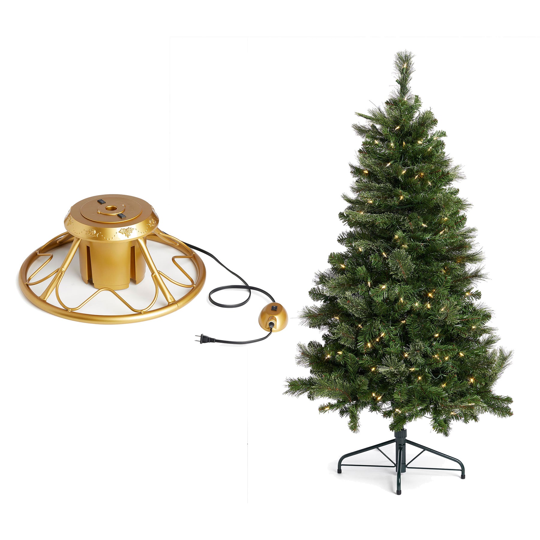 - Experience the holidays hassle-free with the durable, high-quality, rotating artificial Christmas tree stand