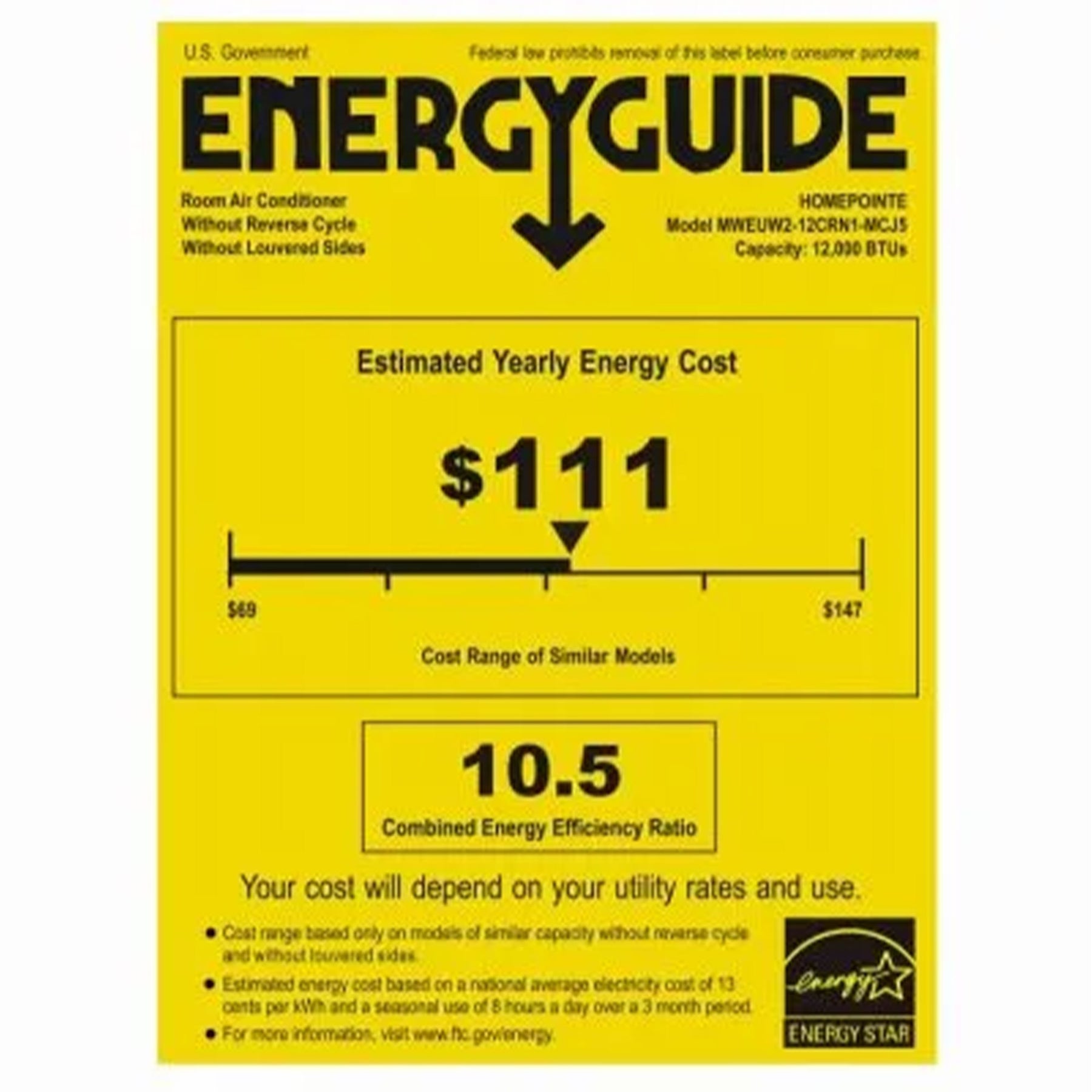 • HomePointe's 12,000 BTU air conditioner delivers exceptional cooling with a high 10.5 CEER, ensuring a perfect blend of performance and energy efficiency