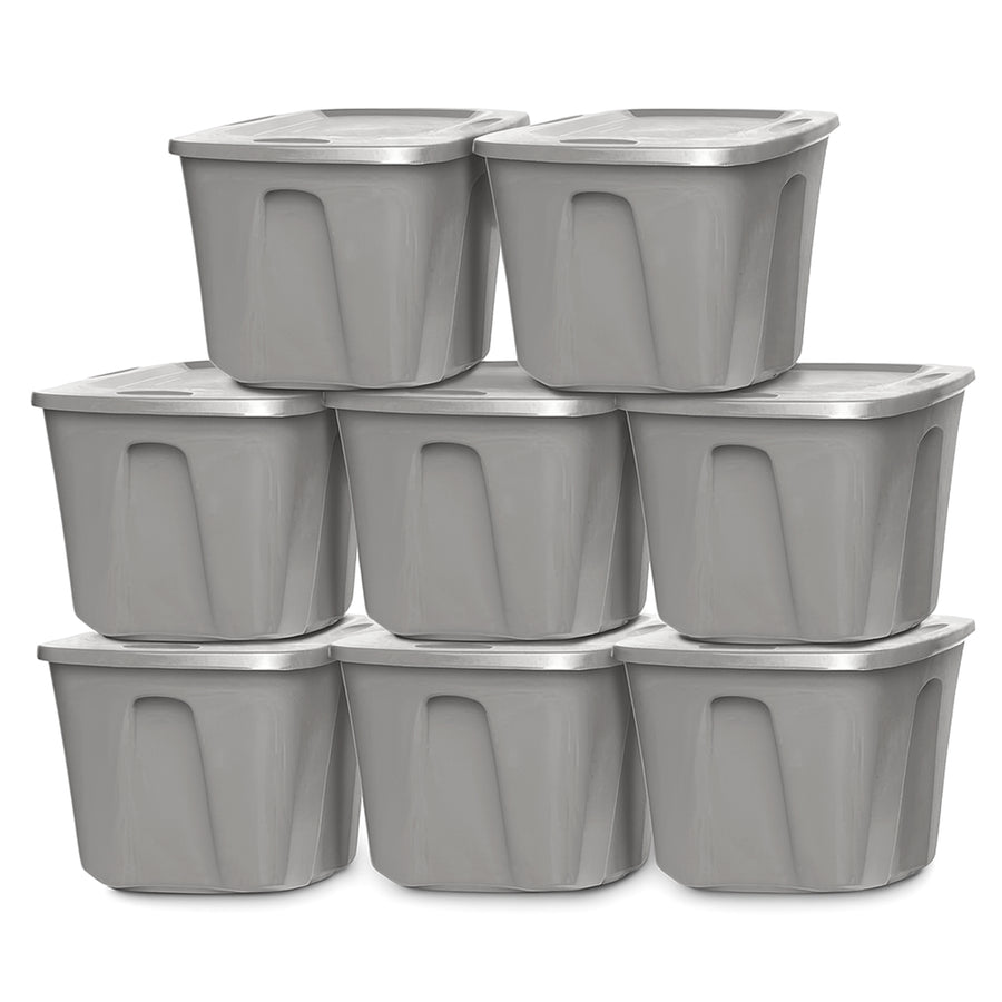 • Set of (8) durable storage container bins with a spacious 10-gallon capacity each that provides ample room for storing a variety of items