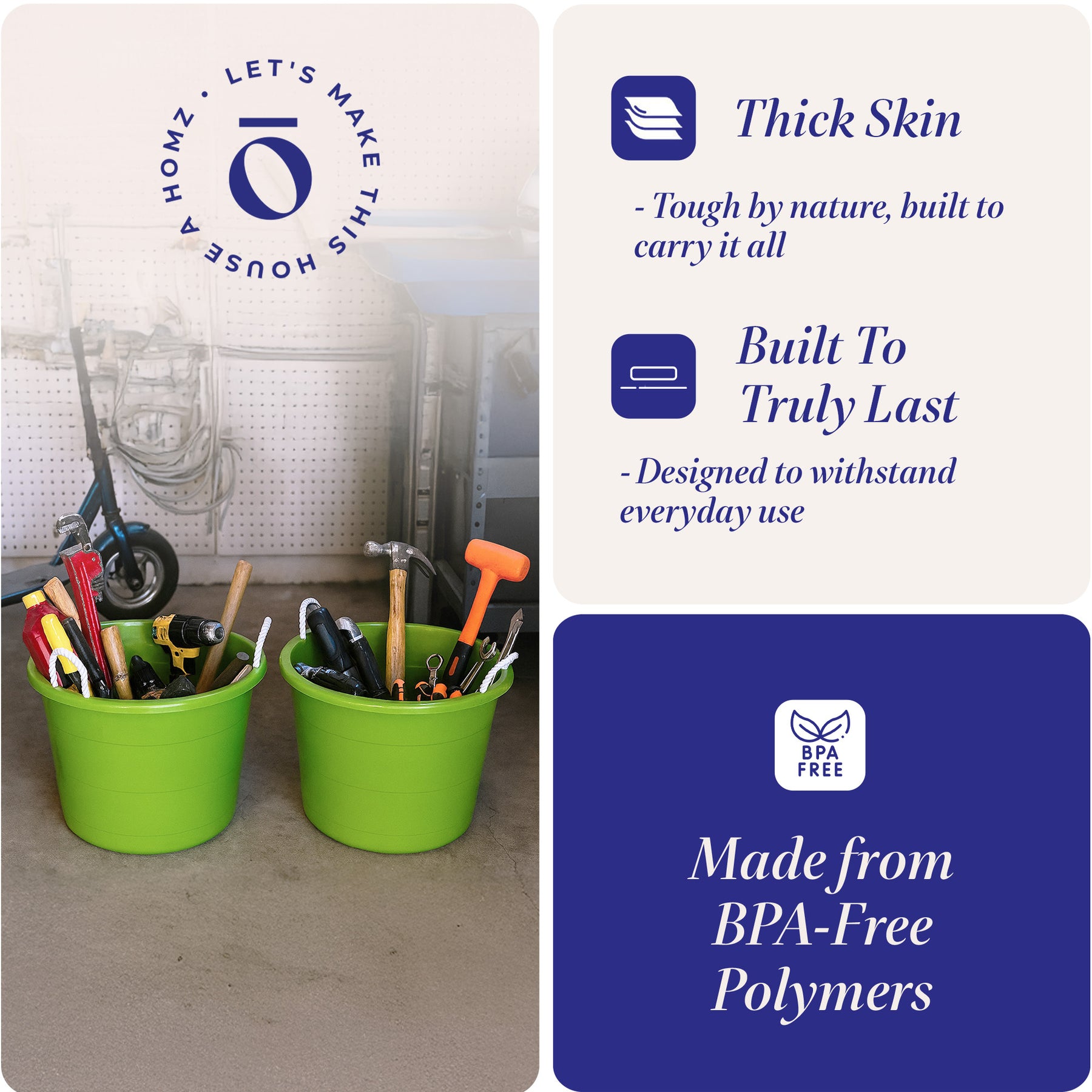 • Sturdy rope handles with a comfortable grip make these buckets incredibly convenient to transport anywhere you go