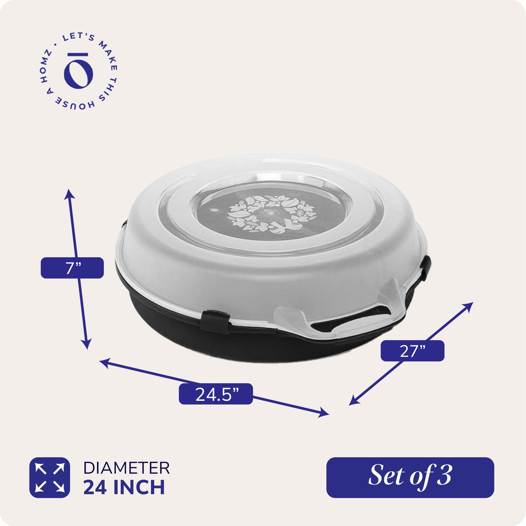 Homz 24" Seasonal Holiday Christmas Plastic Wreath Storage Box, Black (Set of 3)