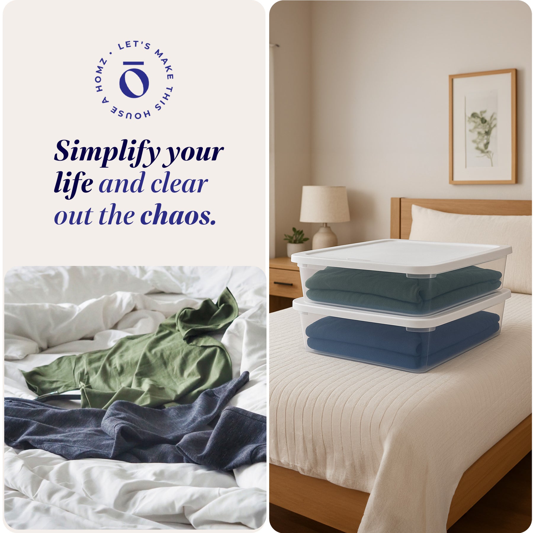 • Set of (2) 28-quart storage bins ideal for office supplies, kitchen utensils, holiday decorations, personal items, and more