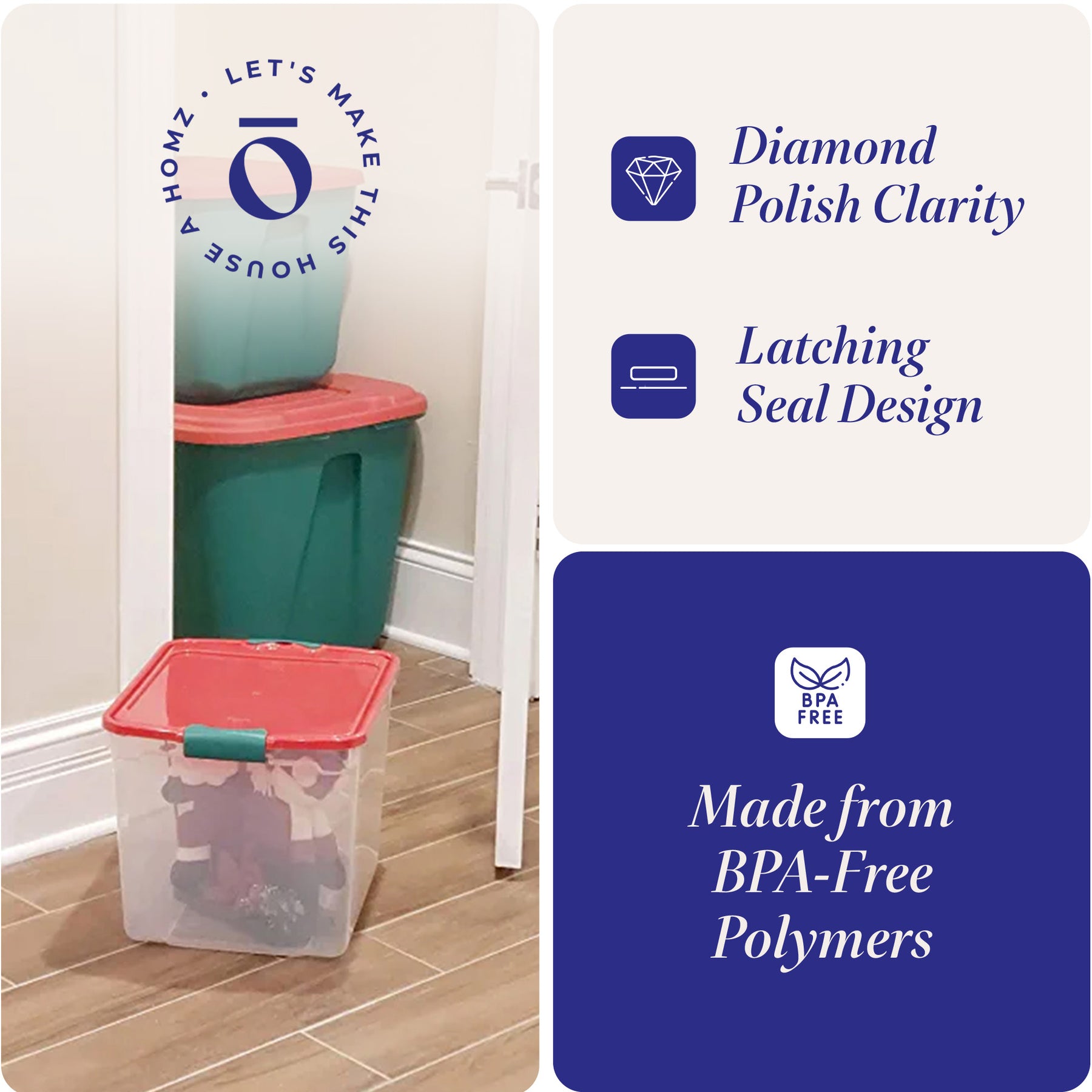 HOMZ 31 Qt Holiday Plastic Container w/ Latching Handles (4 Pack) (Open Box)