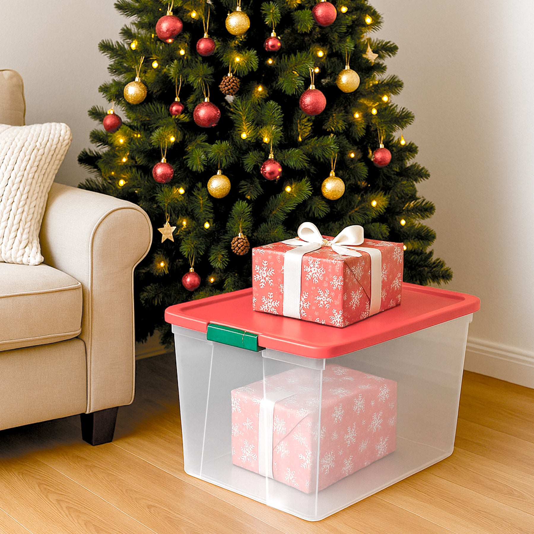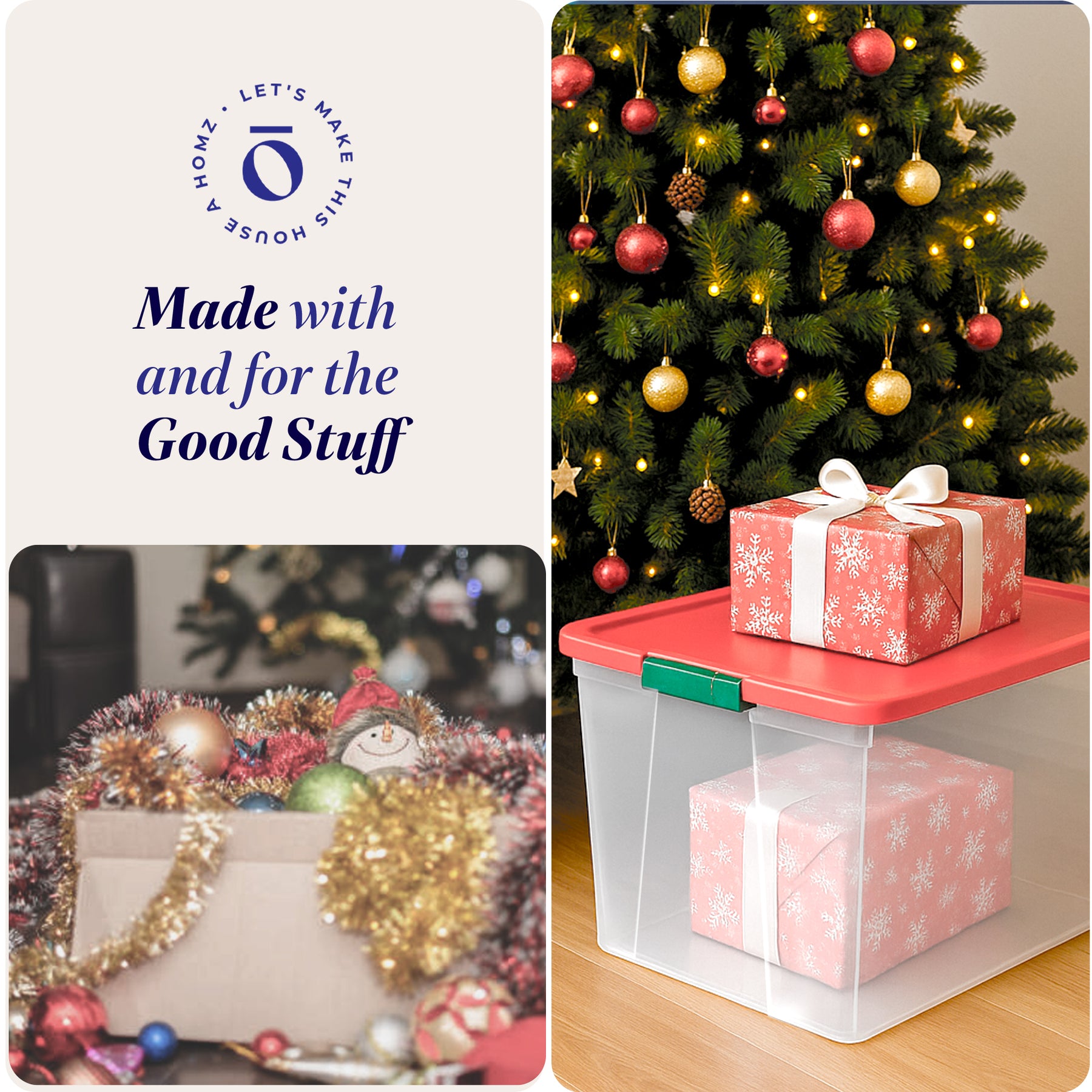 Homz 64 Qt Secure Latch Clear Plastic Storage Container Bin w/ Red Lid, 2 Pack