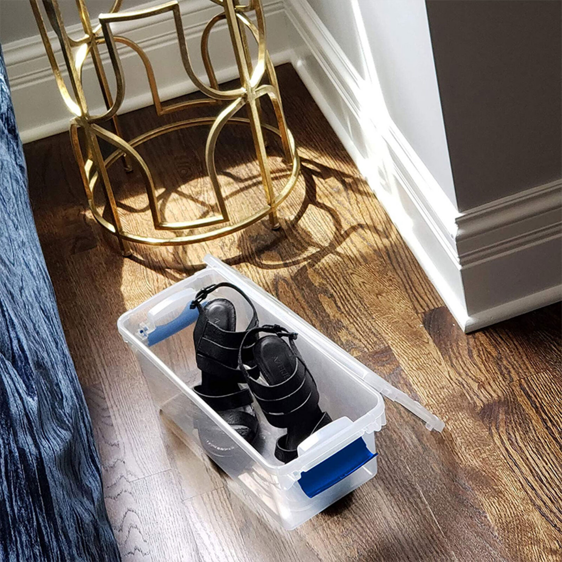• Set of (5) 7.5-quart storage bins ideal for organizing clothing, office supplies, personal items, and more