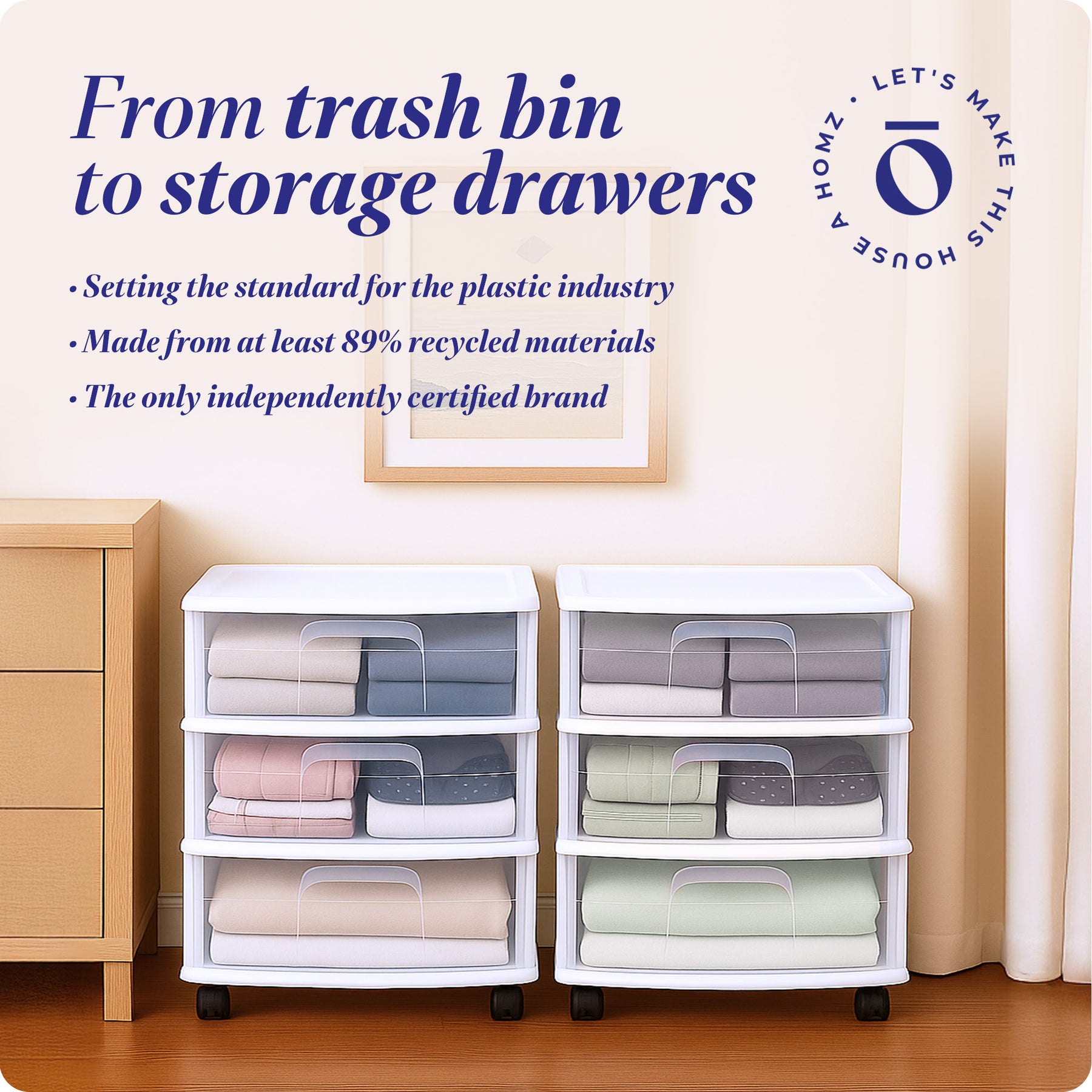 Whether you place it in the bathroom, your bedroom, the laundry room, or kitchen, make use of this convenient storage organizer. The heavy-duty white plastic frame keeps the 3 drawers in place so you can store everything from shoes and clothing to art supplies and holiday decorations. The clear drawer design makes it easy for you to quickly identify the contents without having to remove or open the container. A top recessed lid makes it easy to keep small items in place without rolling off.