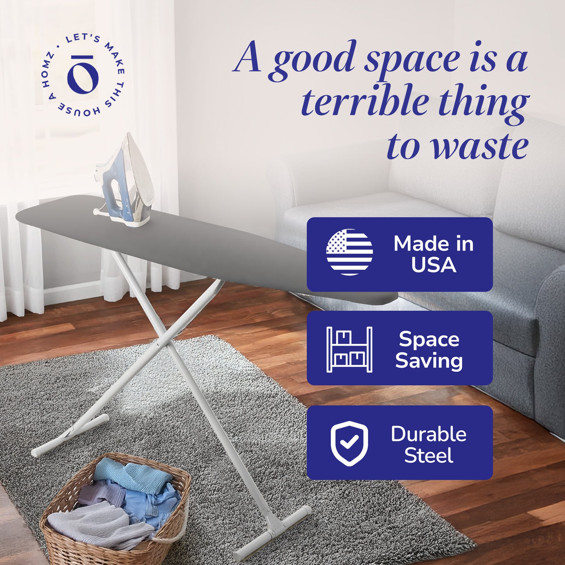 • Ample 53-inch long by 13-inch wide board surface provides enough space for garments of all types