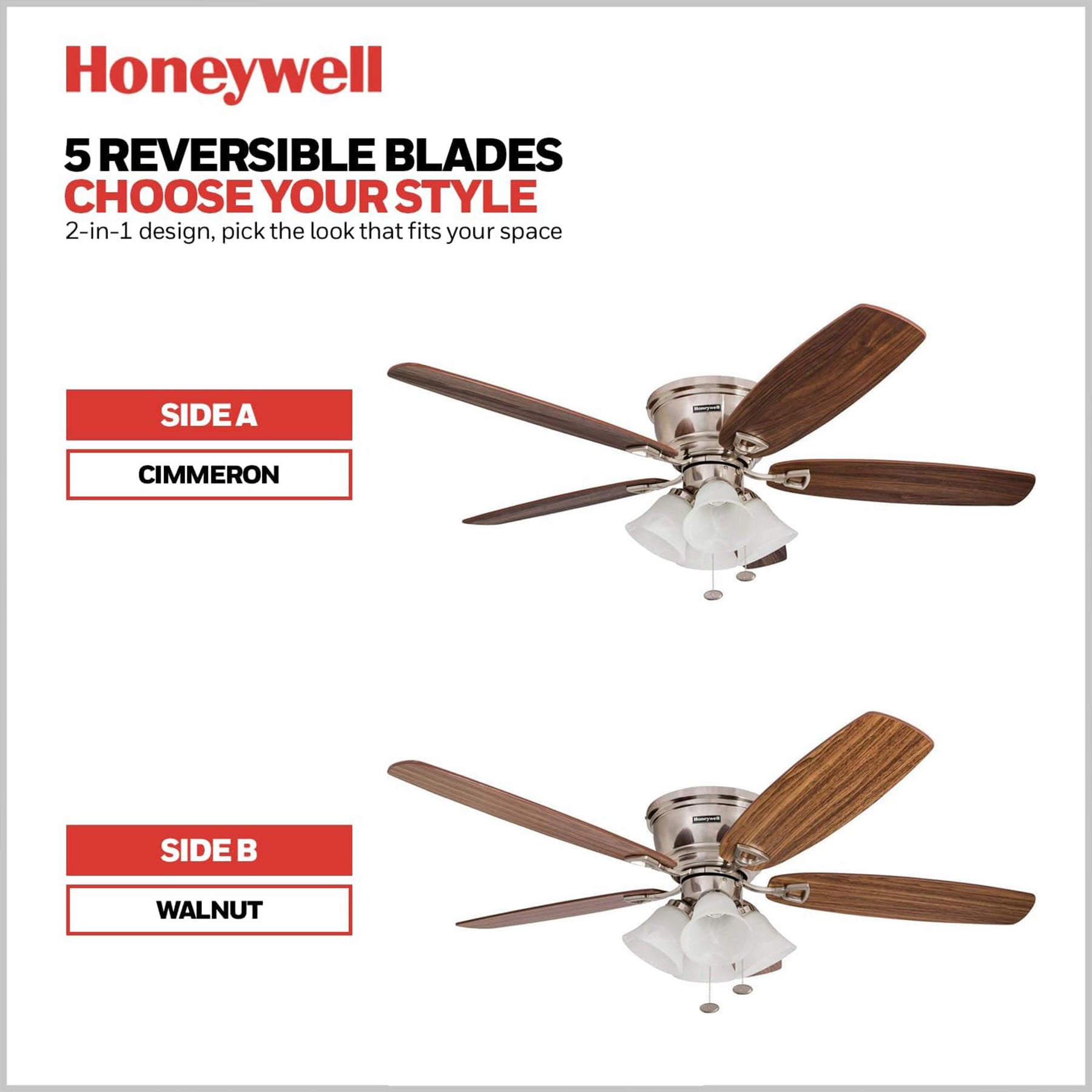 Honeywell Glen Alden 52 Inch Indoor Ceiling Fan with 4 Lights, Brushed Nickel