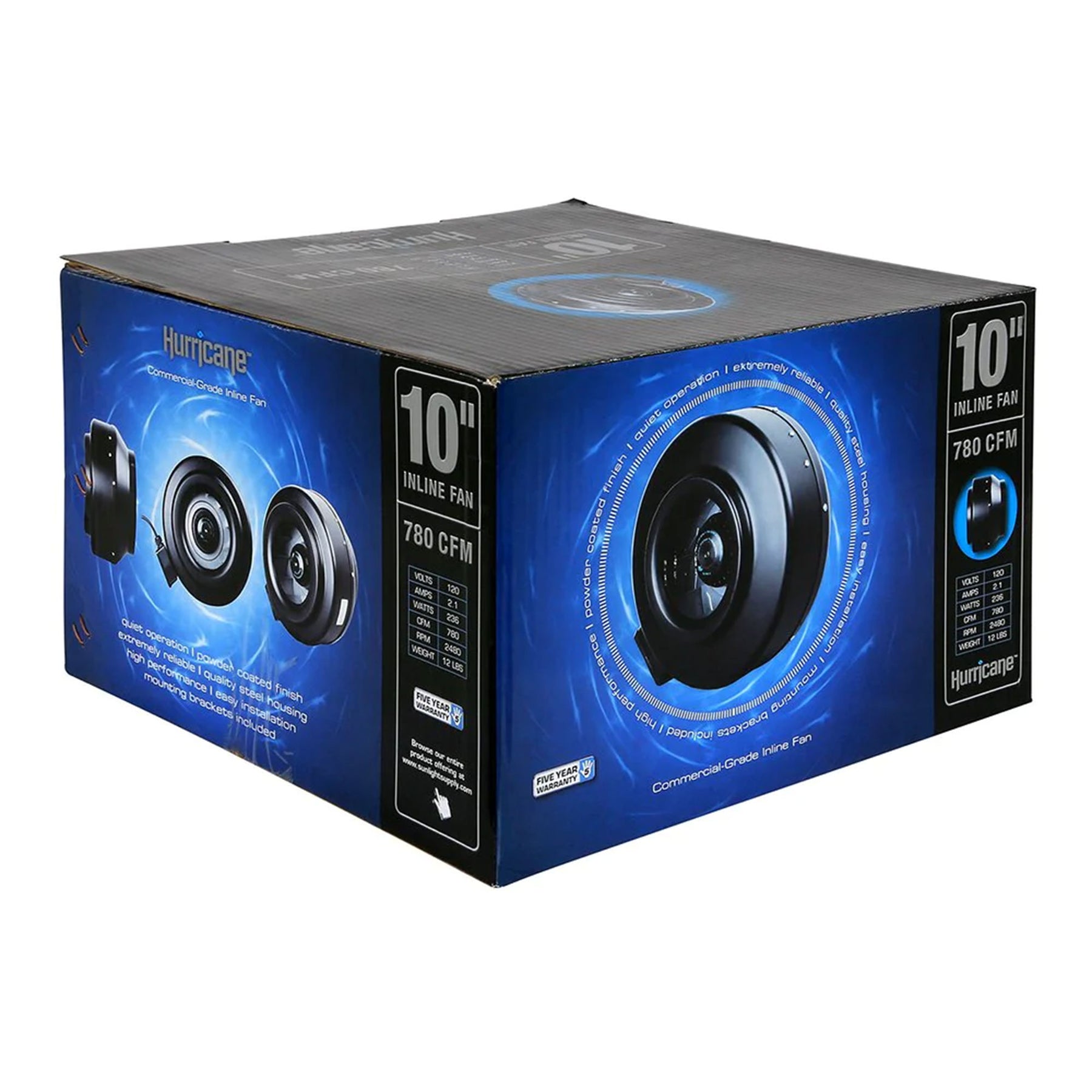 • Commercial Grade Inline Fan, with an impressive 10-inch diameter, delivers a robust airflow of 780 CFM, making it a quality, high-performance ventilation solution