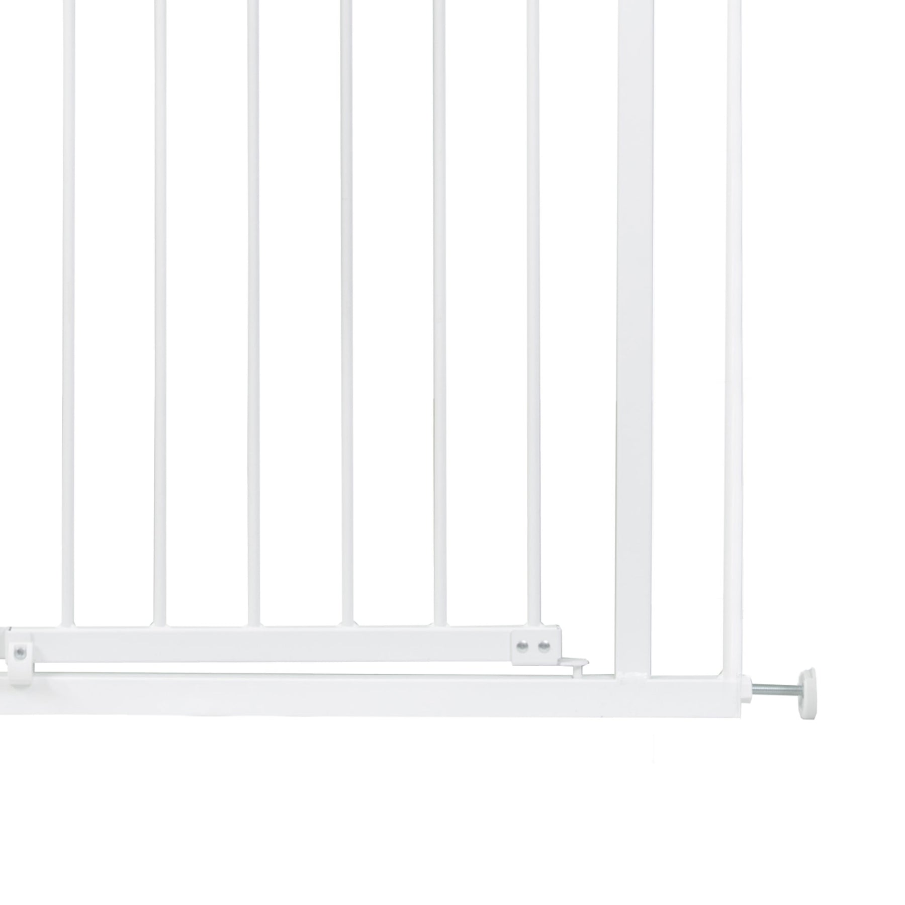 • Finished in a sleek white hue, this dog gate seamlessly integrates into any decor, preserving your home's style without compromise