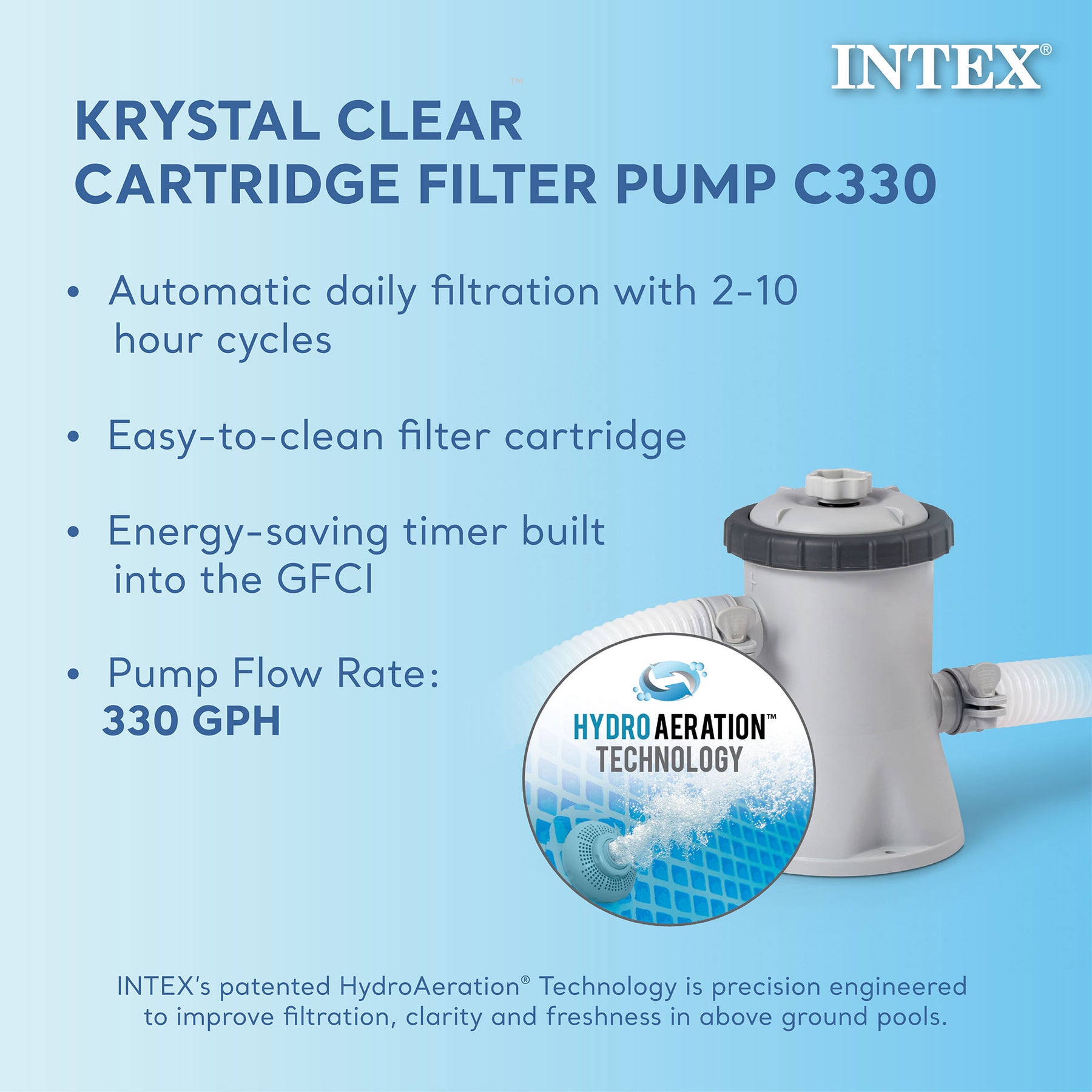 • Krystal Clear 330 GPH cartridge filter pump is included and is very easy to install just hook up the hoses and enjoy clean refreshing water